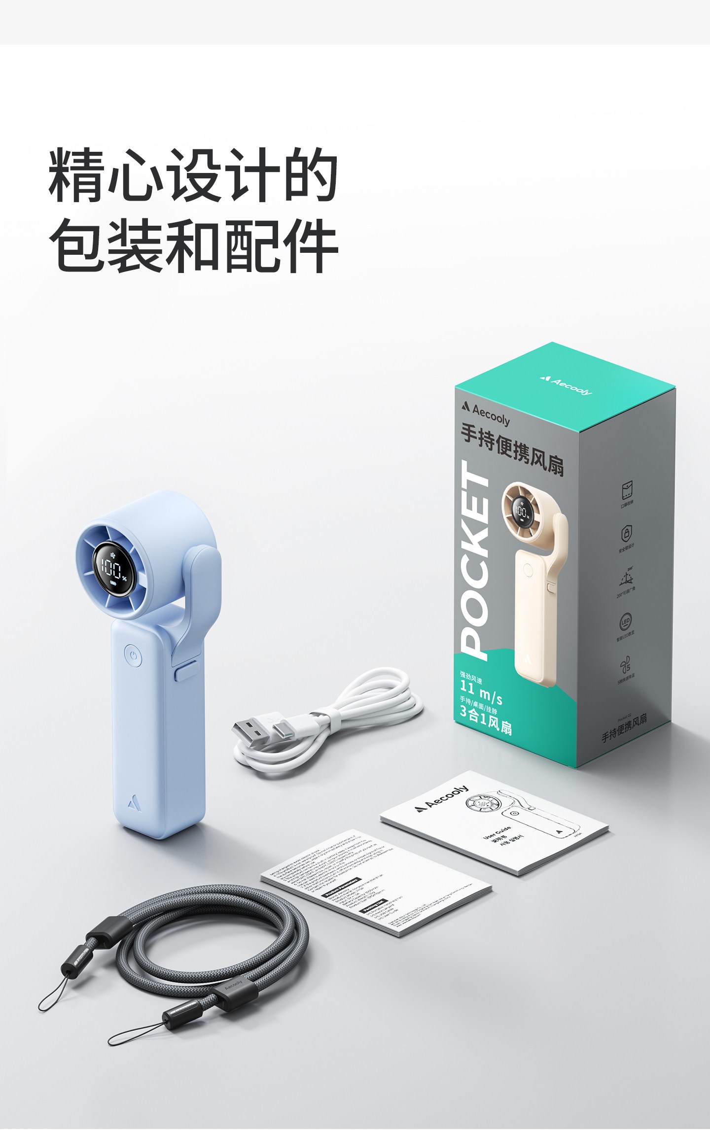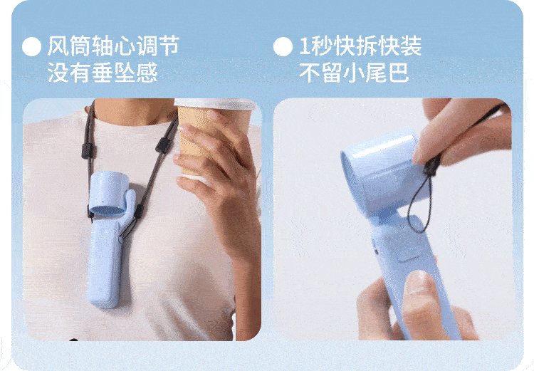 5档风速自由调节☀️夏日刚需❗️便携又能打👉【艾酷力口袋手持风扇PF04】手持/桌立/挂脖三合一🧊解决所有吹风尴尬 ✅超小机身,口袋、包包随便塞