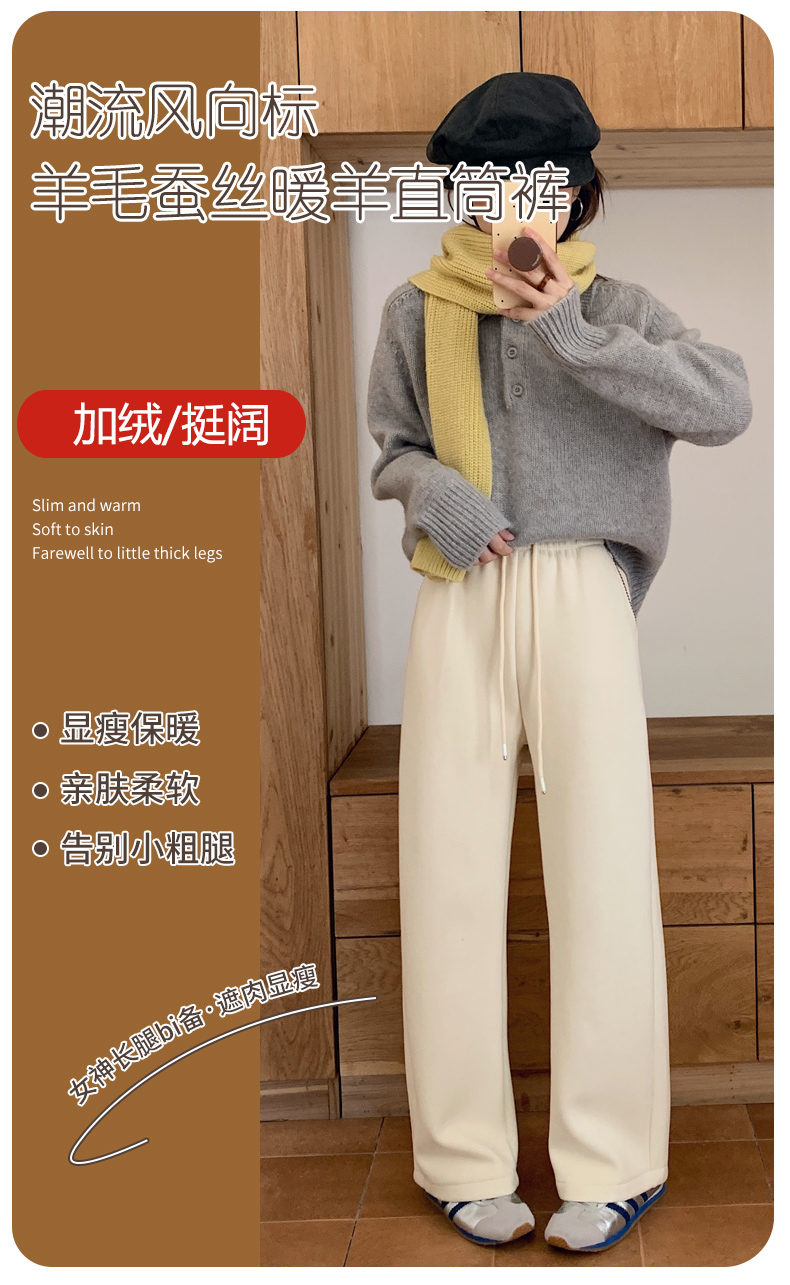 优选丨骆柒柒羊毛蚕丝暖羊直筒裤 加绒加厚保暖舒适显瘦 添加桑蚕丝/羊毛柔软亲肤 口袋采用曲牙设计增添设计感