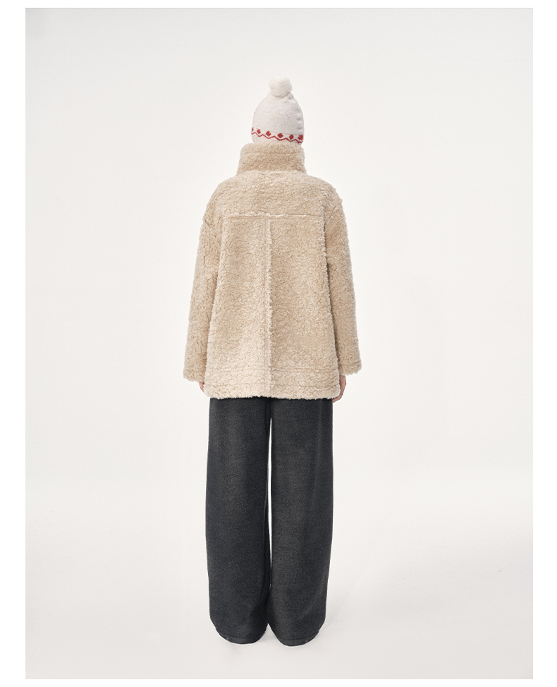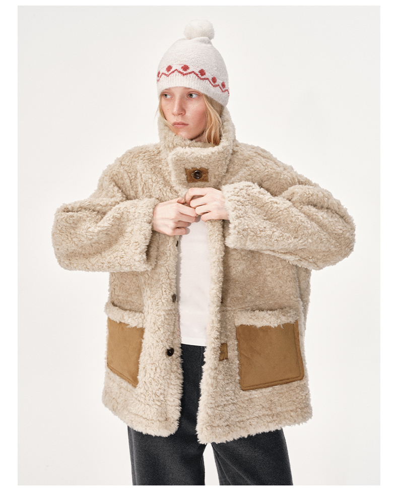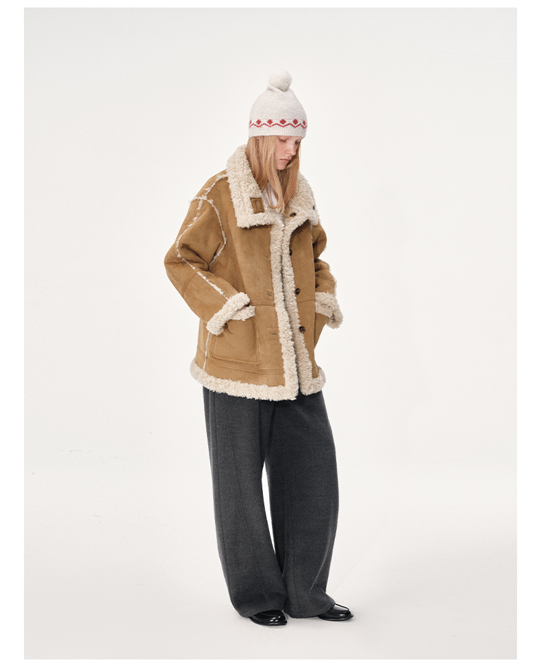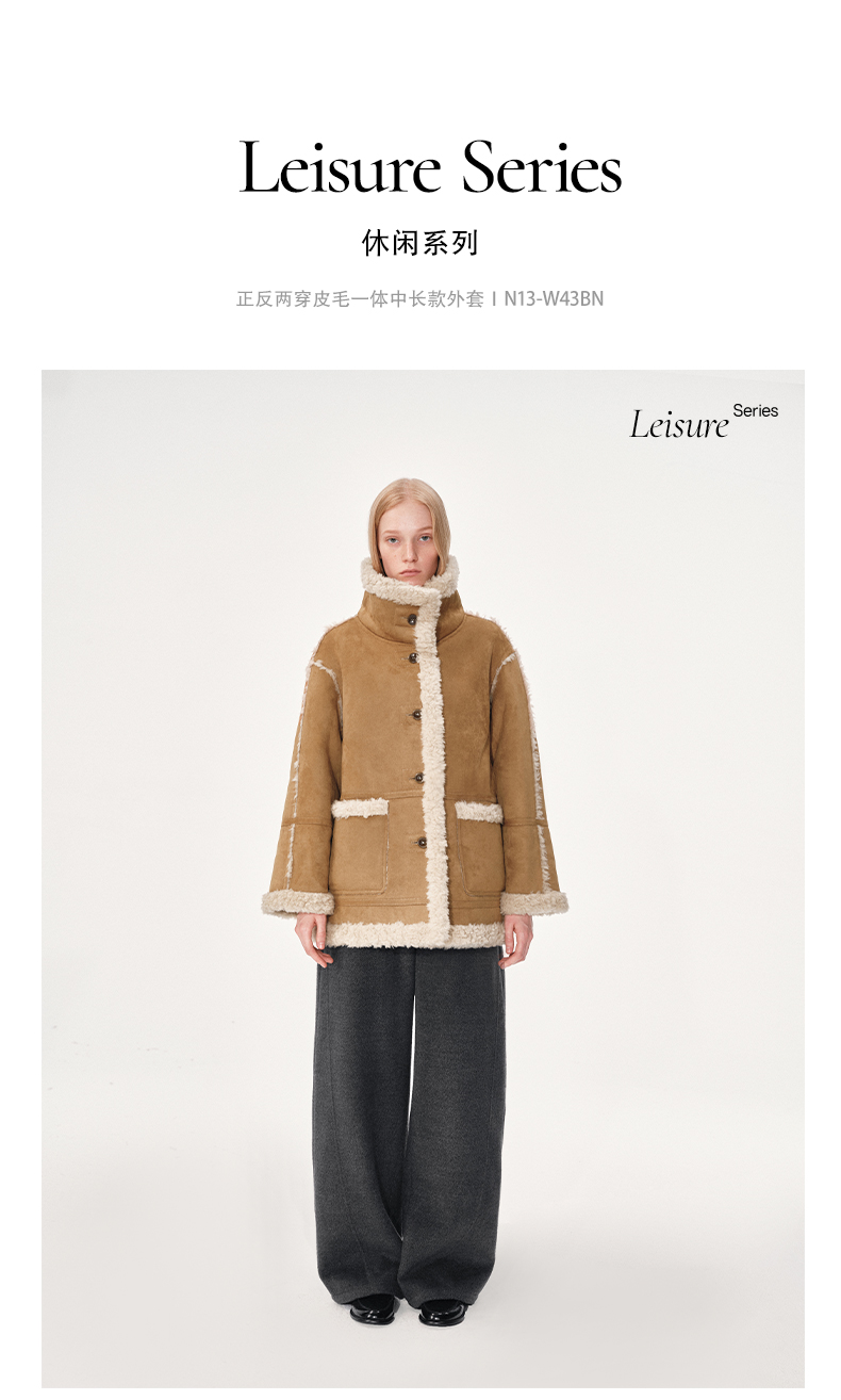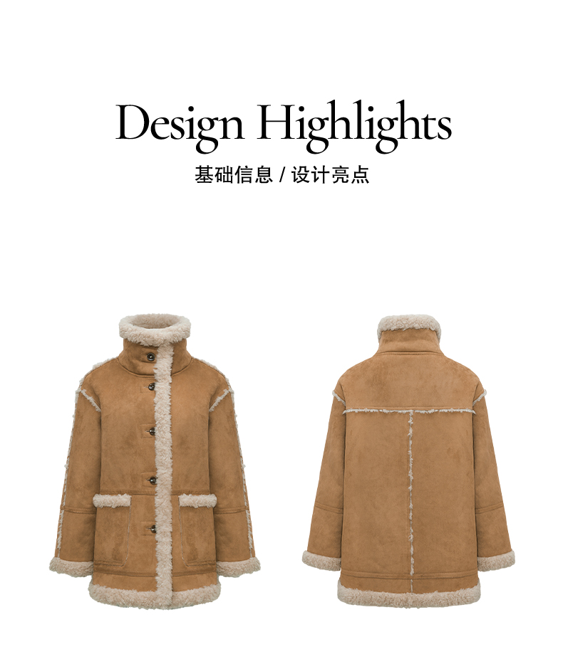 NUTH复古正反两穿皮毛一体宽松中长款厚外套女 浅驼色(发货时间同步天猫)