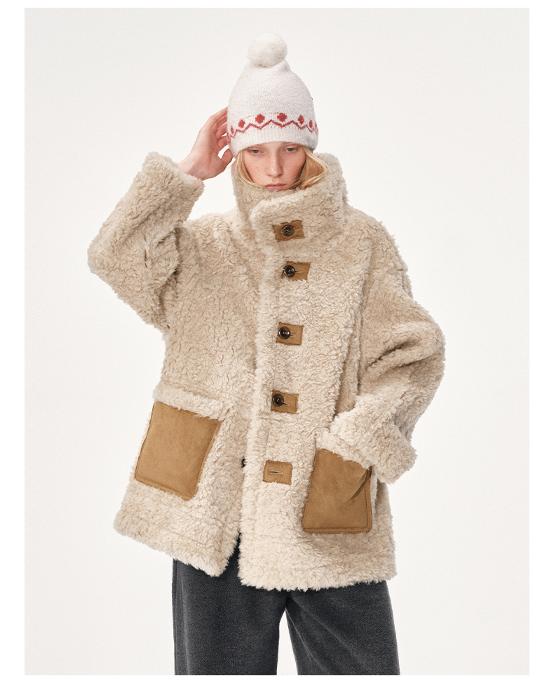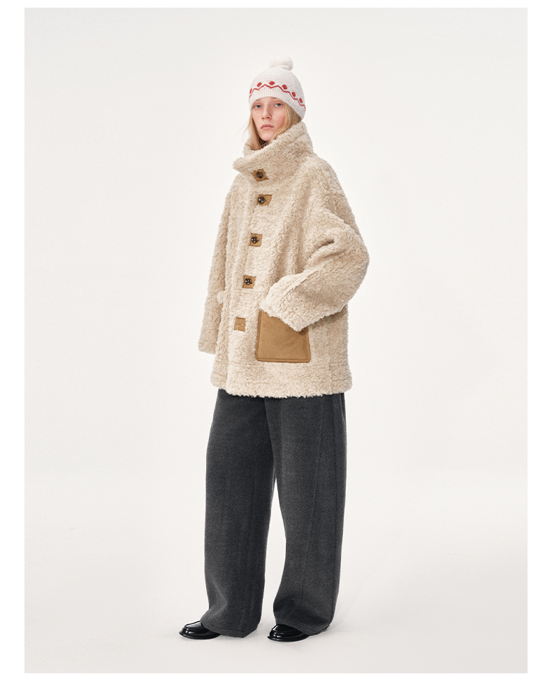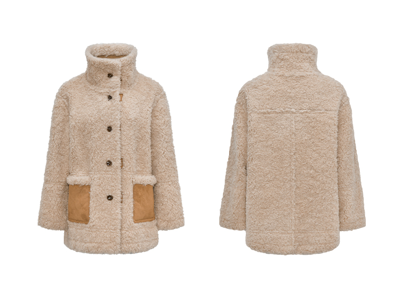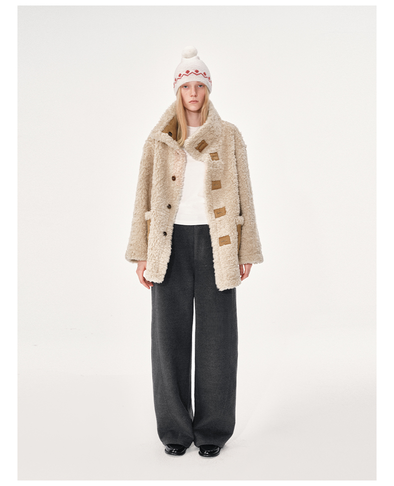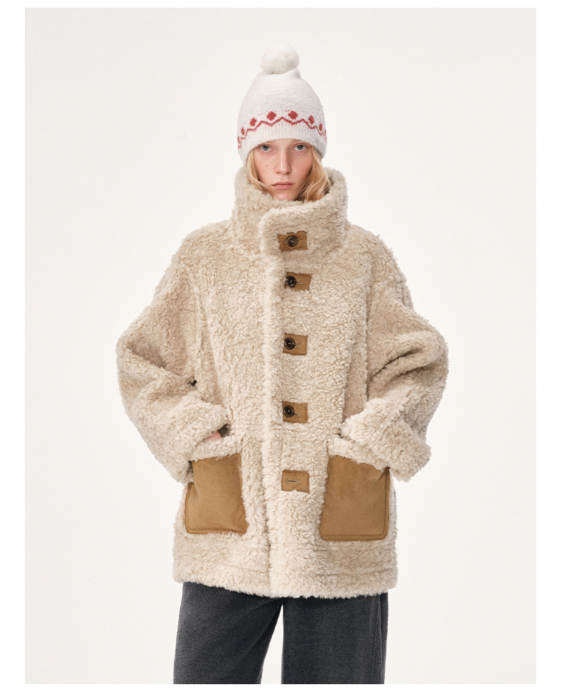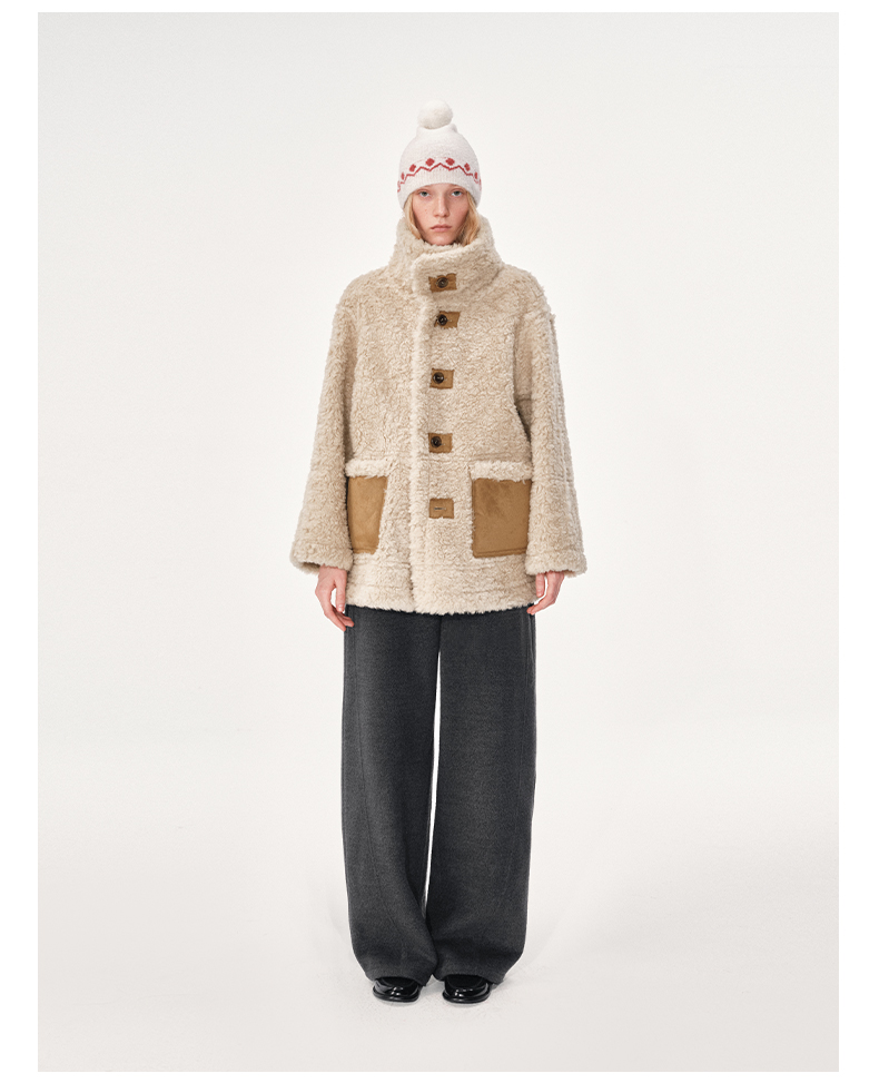 NUTH复古正反两穿皮毛一体宽松中长款厚外套女 浅驼色(发货时间同步天猫)