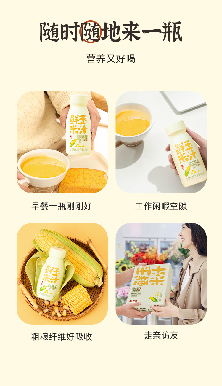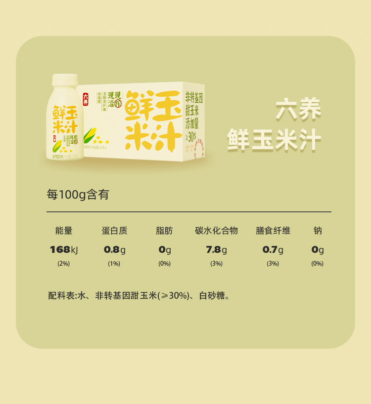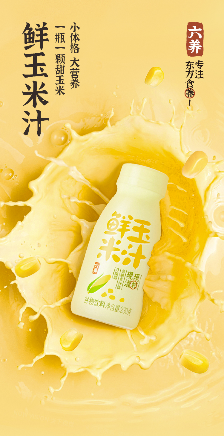 六养鲜榨有机玉米汁230g*8瓶/箱 甄选新鲜玉米现榨现灌香浓东方五谷杂粮早餐冲饮料