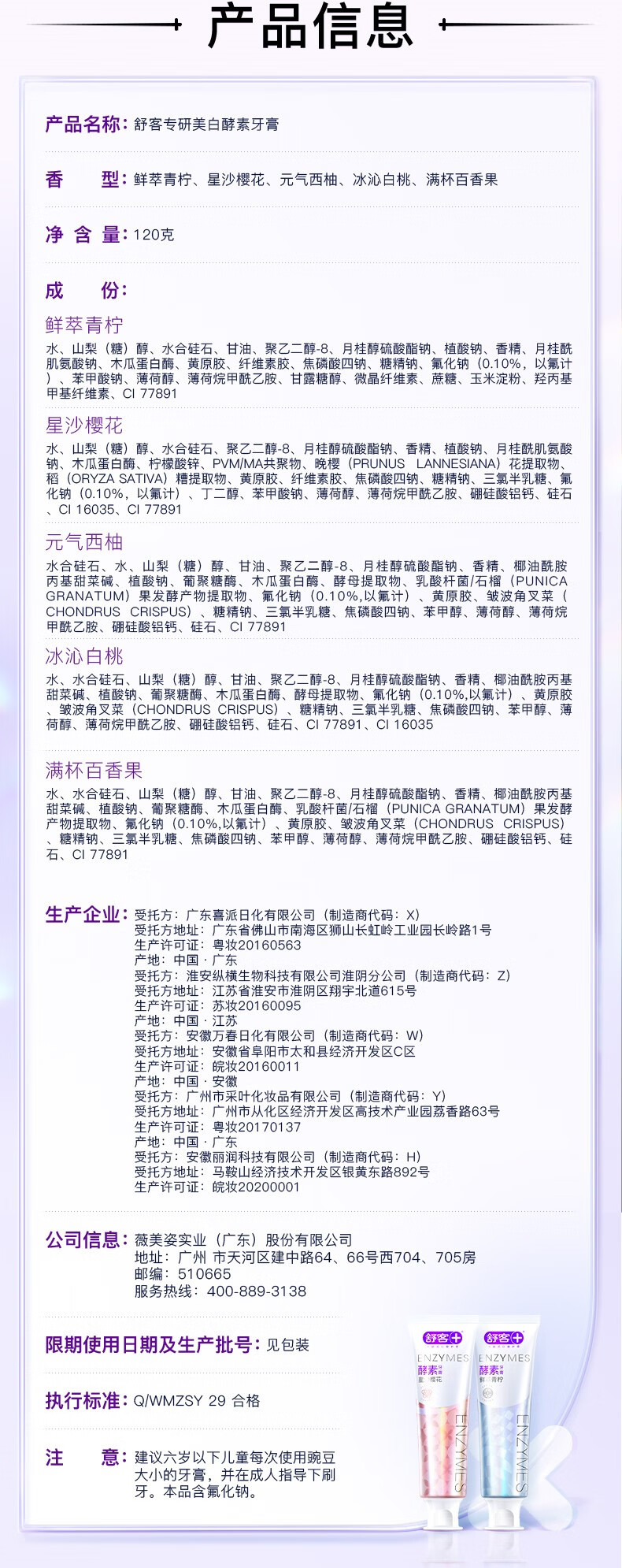 舒客 牙膏 专研美白酵素牙膏(多汁蜜桃)120克*2