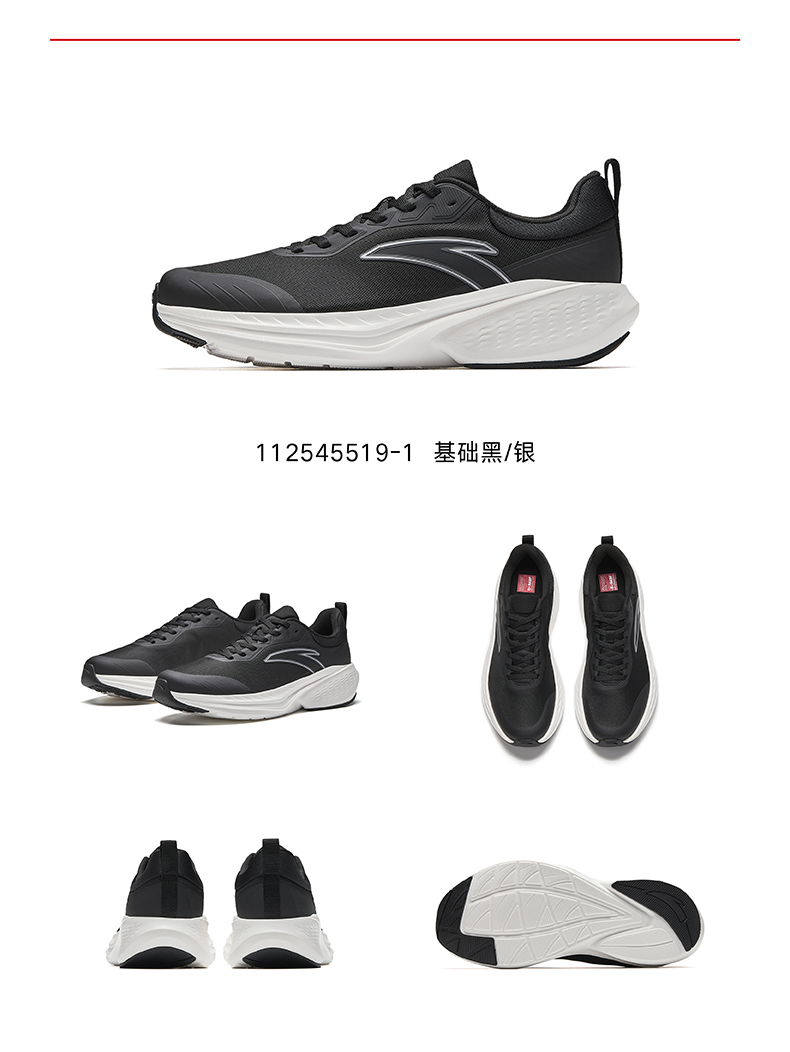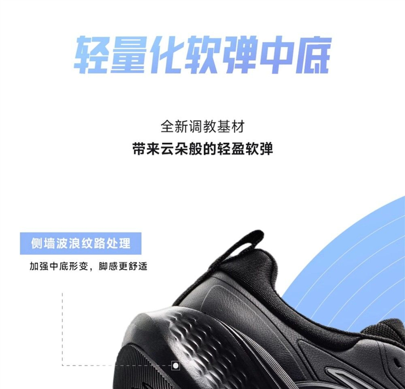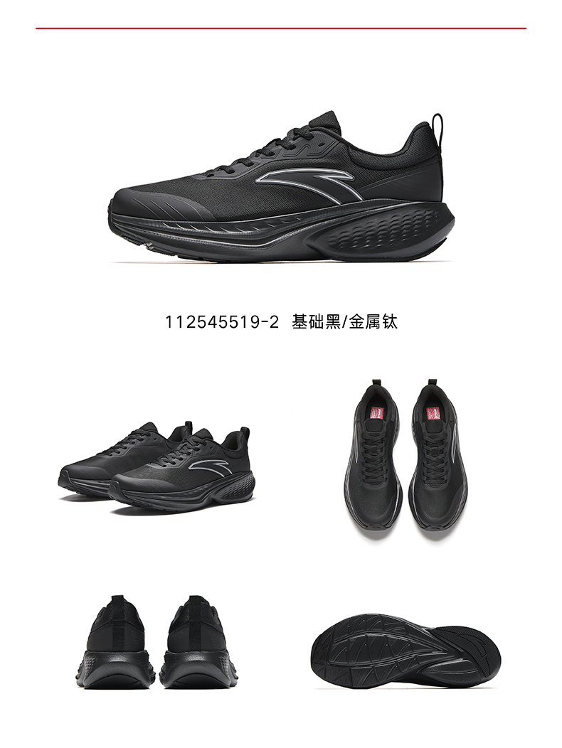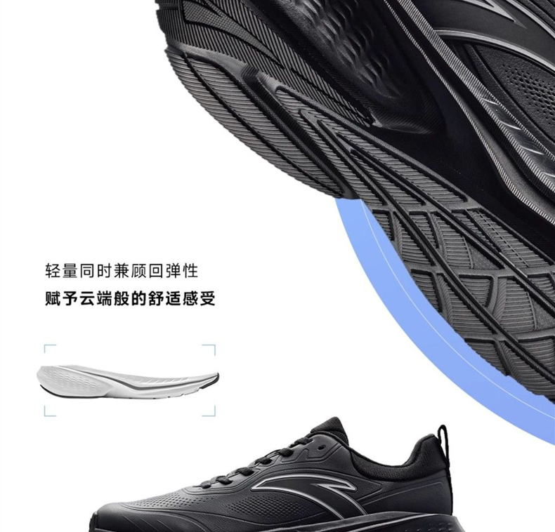 安踏云途丨缓震跑步鞋男轻便回弹2025冬季新款黑色跑鞋112545519