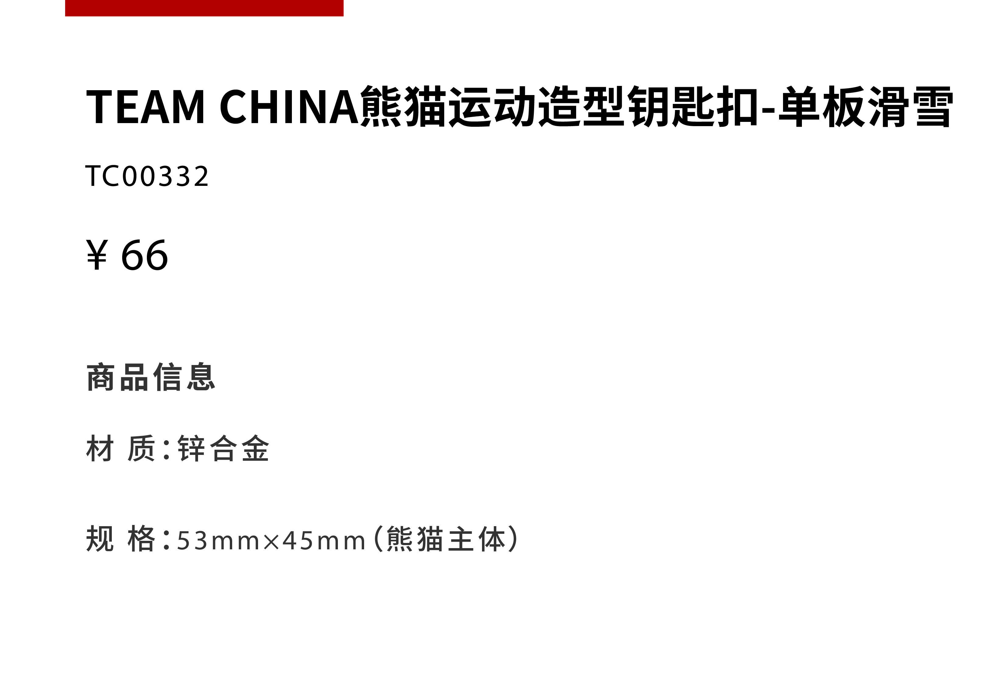 TEAM CHINA熊猫运动造型钥匙扣-单板滑雪