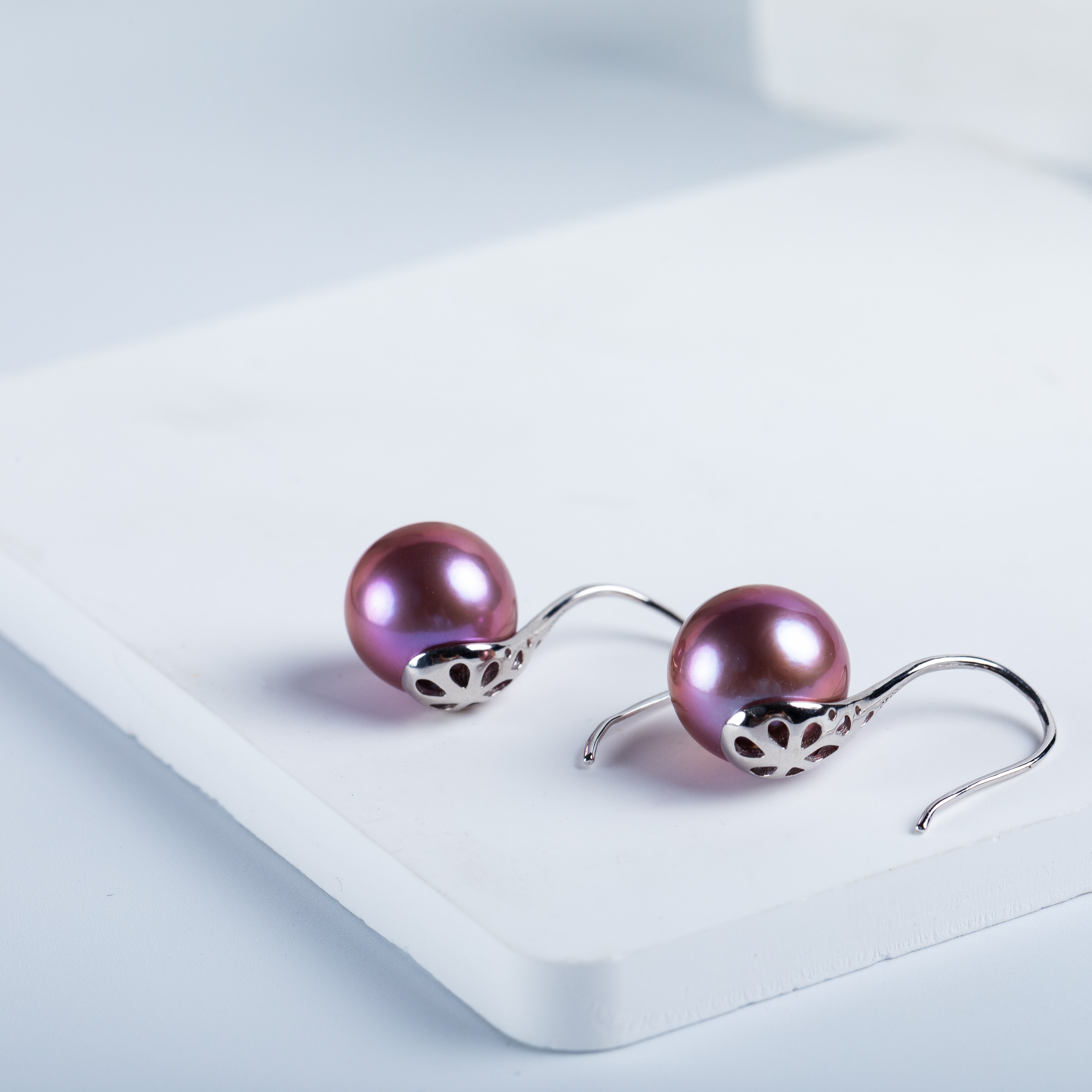 紫色淡水珍珠高跟鞋耳钩 EGG16