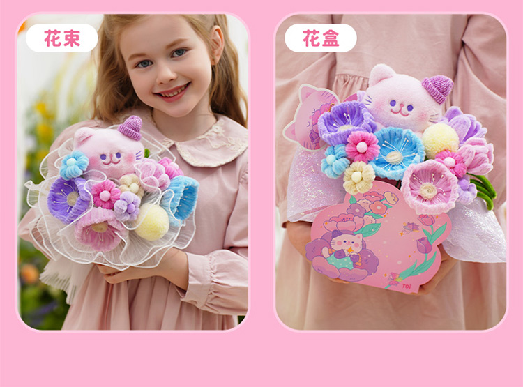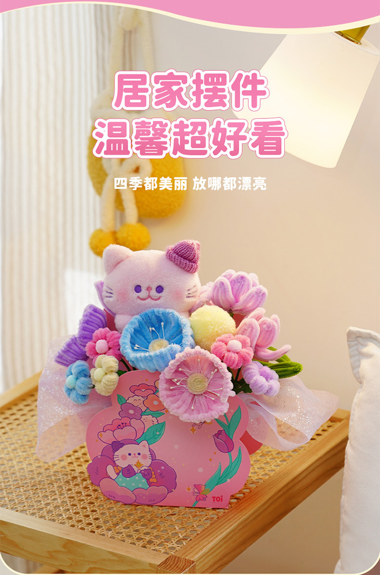 TOI图益扭扭棒花束手工diy喵喵花开男孩女孩礼物