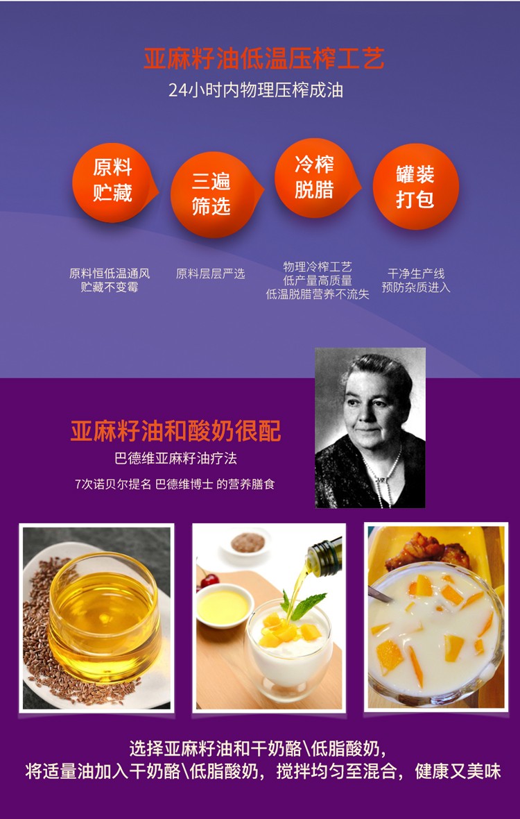 皇家芭苛斯 亚麻籽油 特级压榨 亚麻籽油1.8L