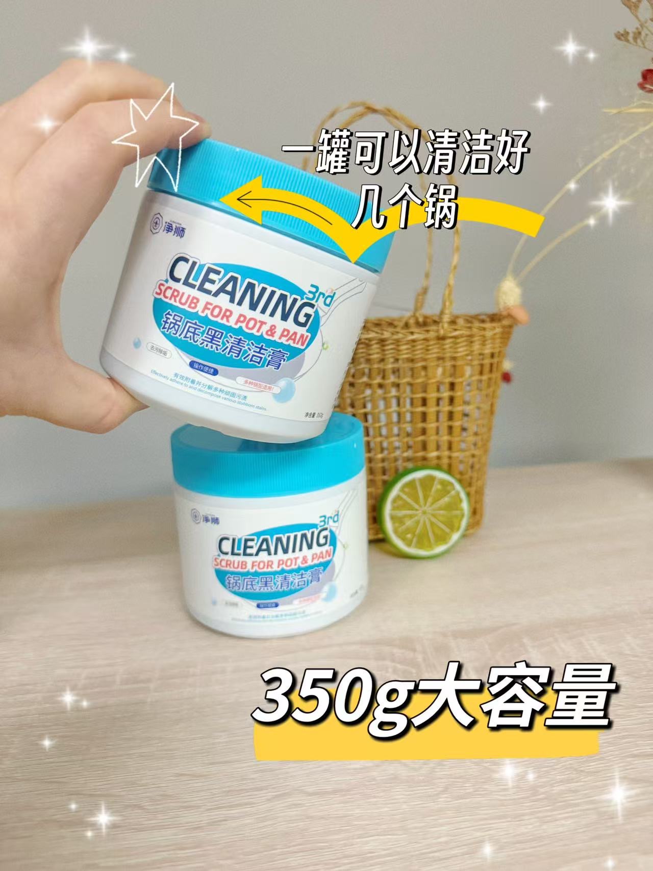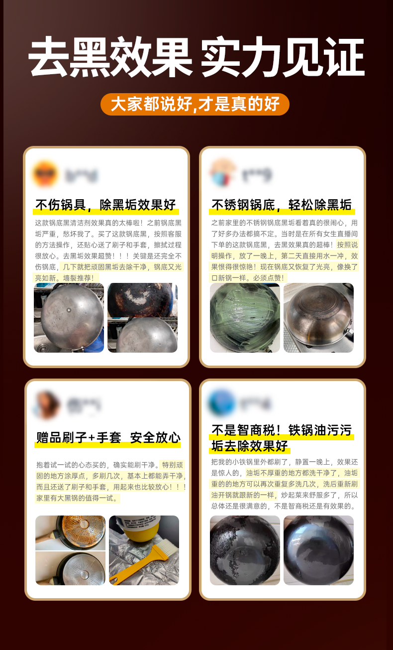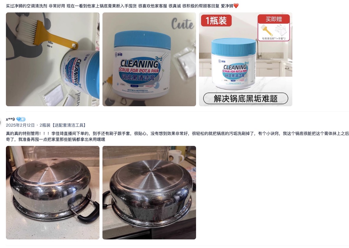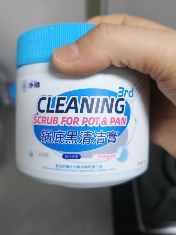 "使用这款清洁膏后,我家的旧锅焕然一新,黑垢一扫而光,非常推荐!"