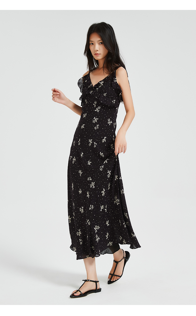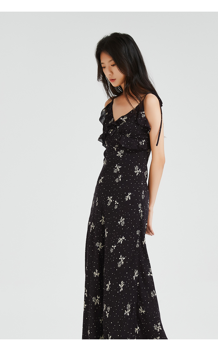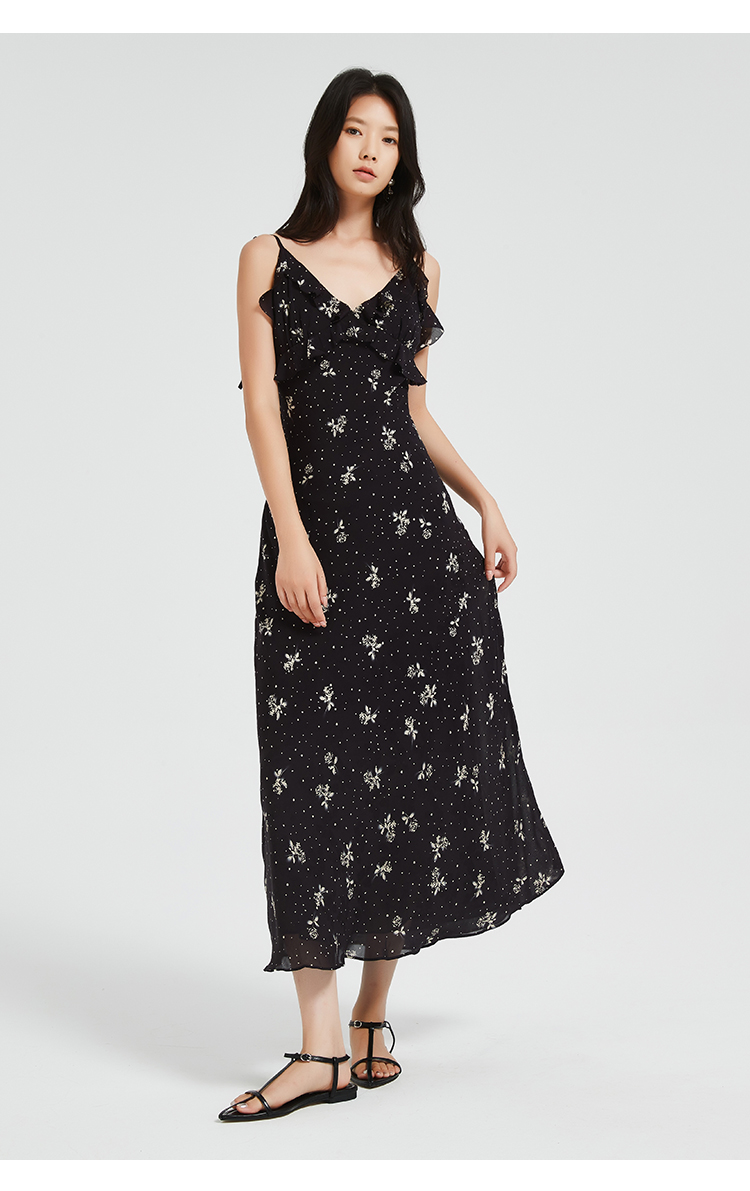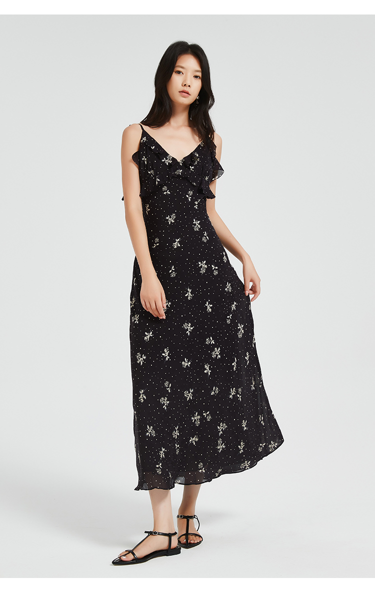 272139925荷叶边印花吊带裙