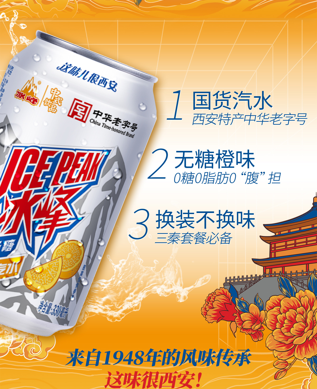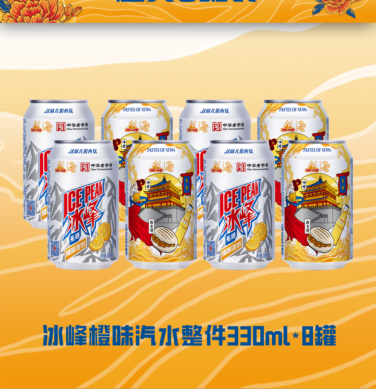 冰峰无糖橙味汽水330ml*24罐装碳酸饮料中华老字号老汽水