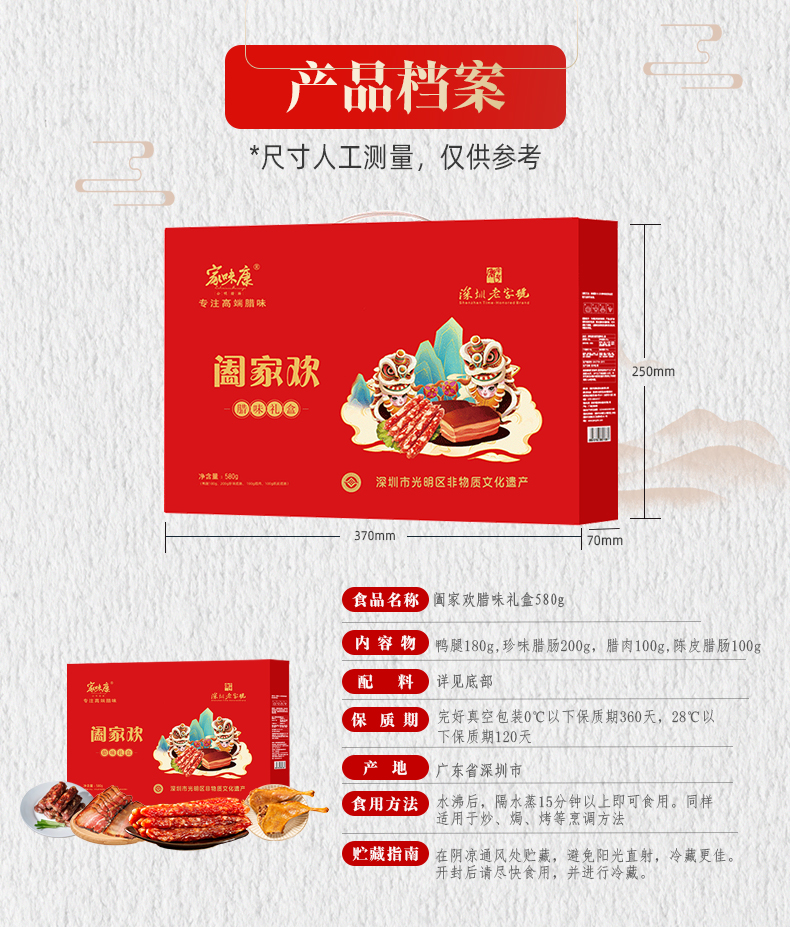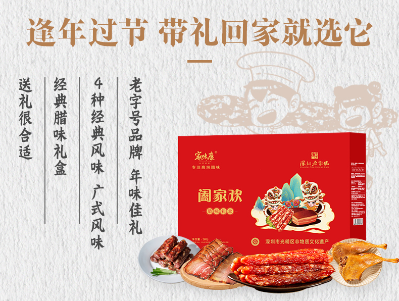 【家味康】深圳老字号阖家欢腊味礼盒580g