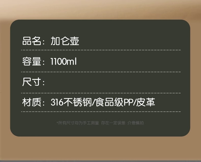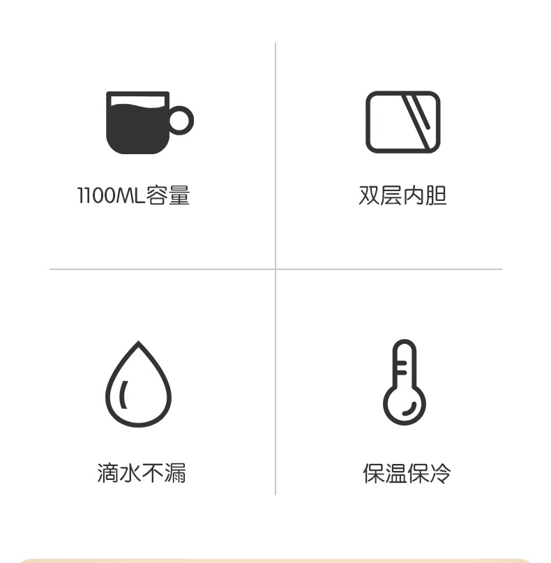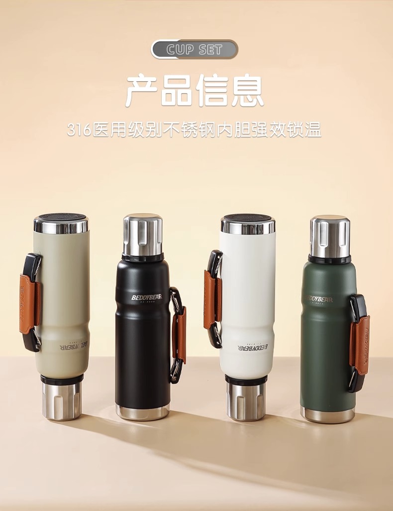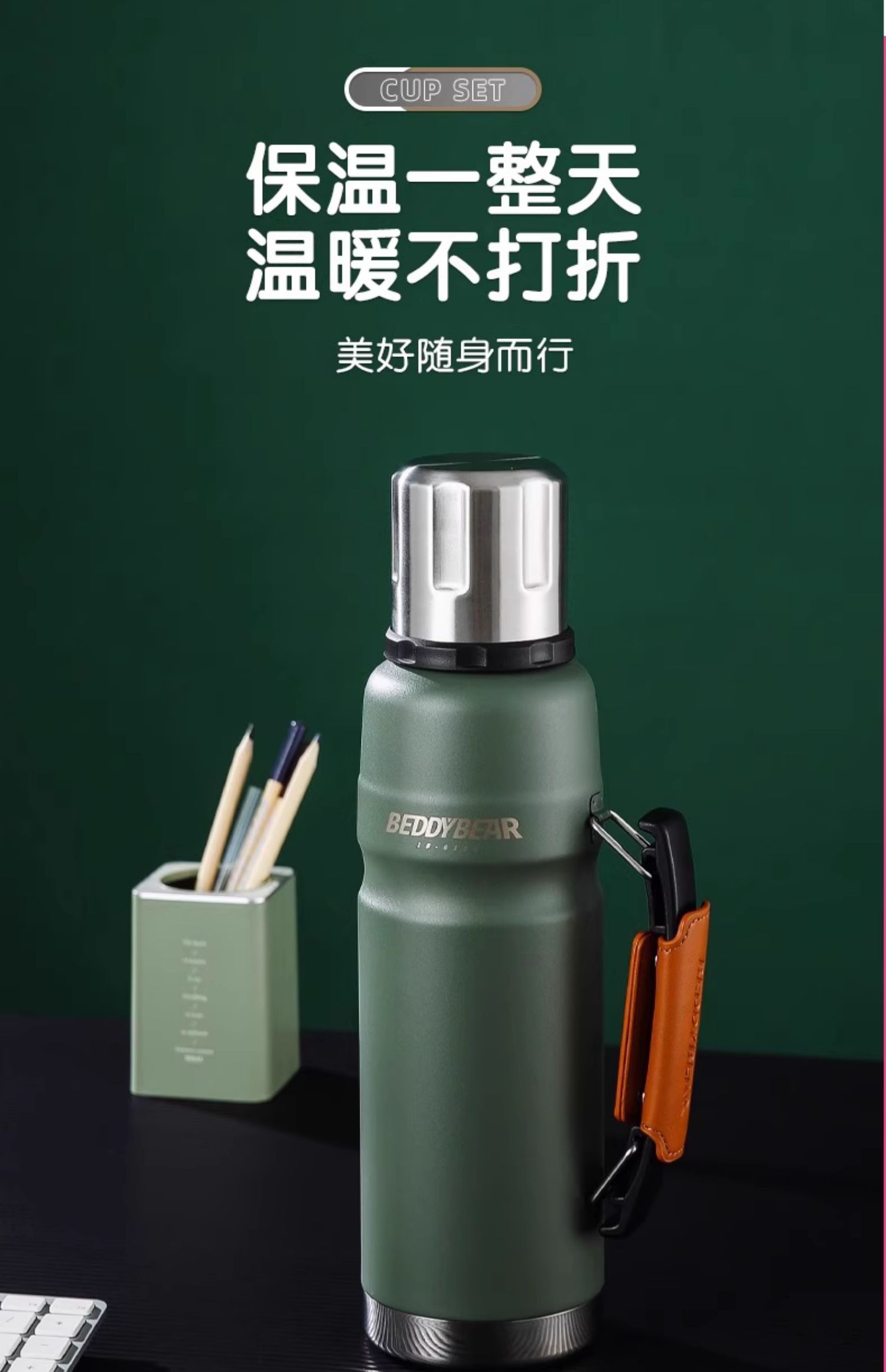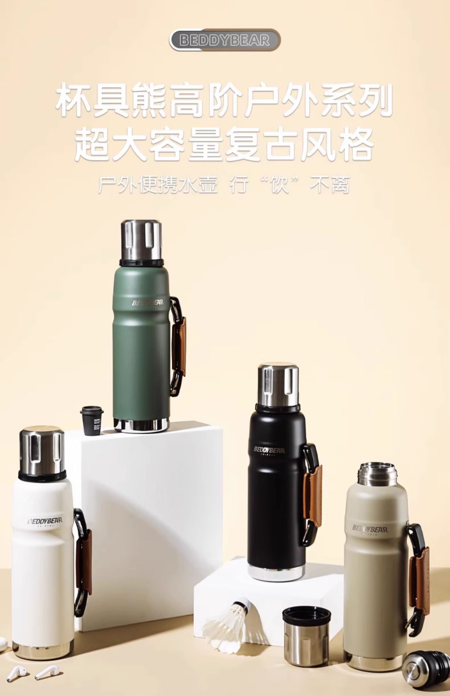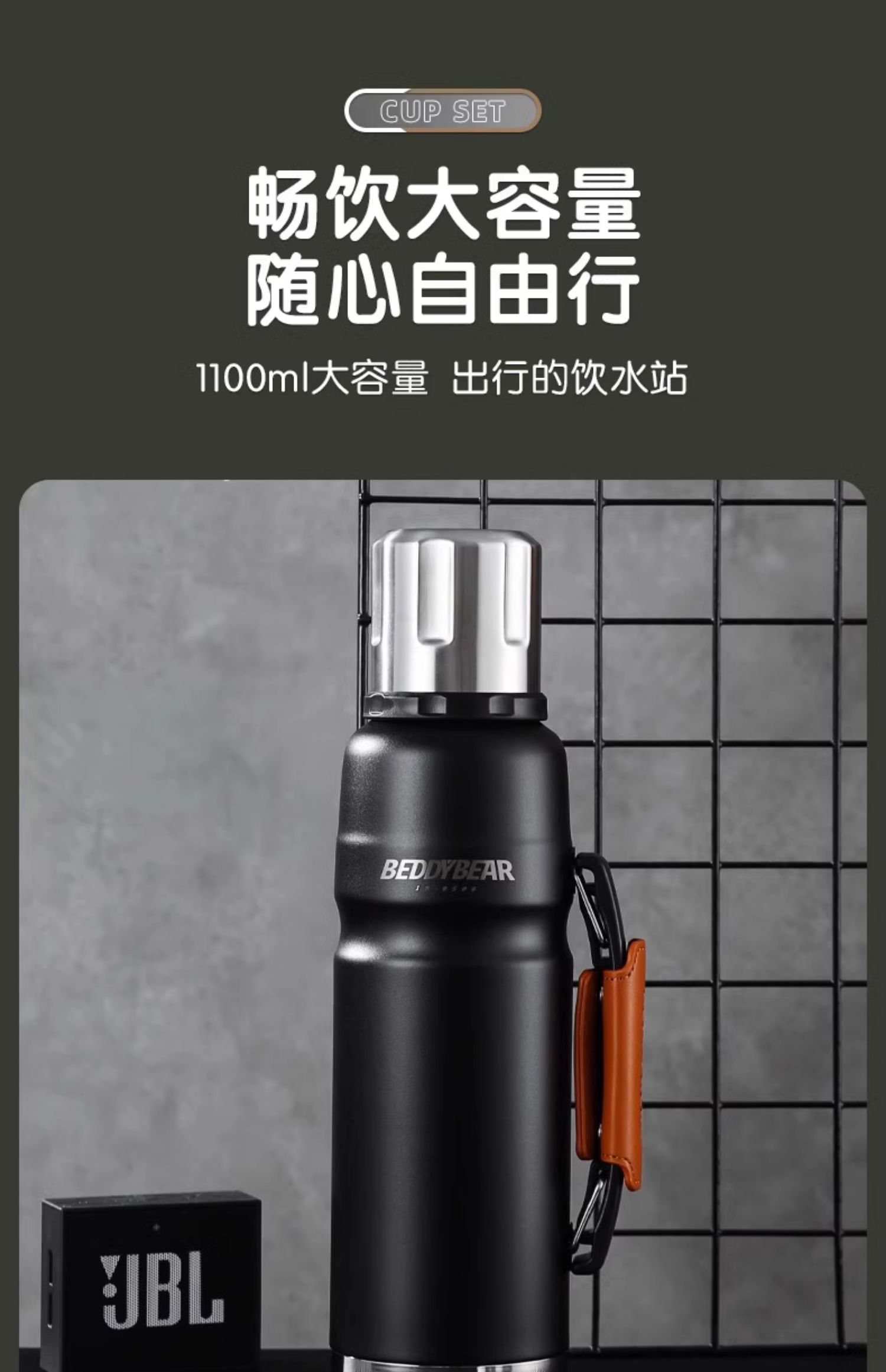 杯具熊 加仑壶大容量户外保温杯车载水杯成人户外水瓶316不锈钢内胆1100ml
