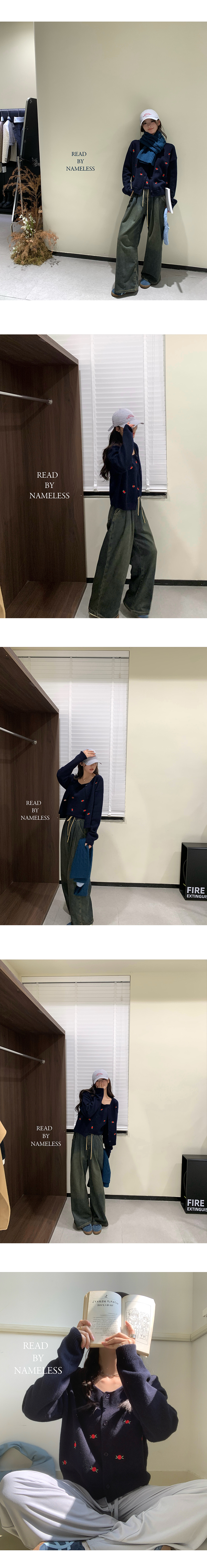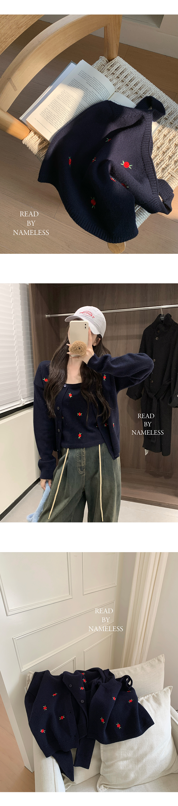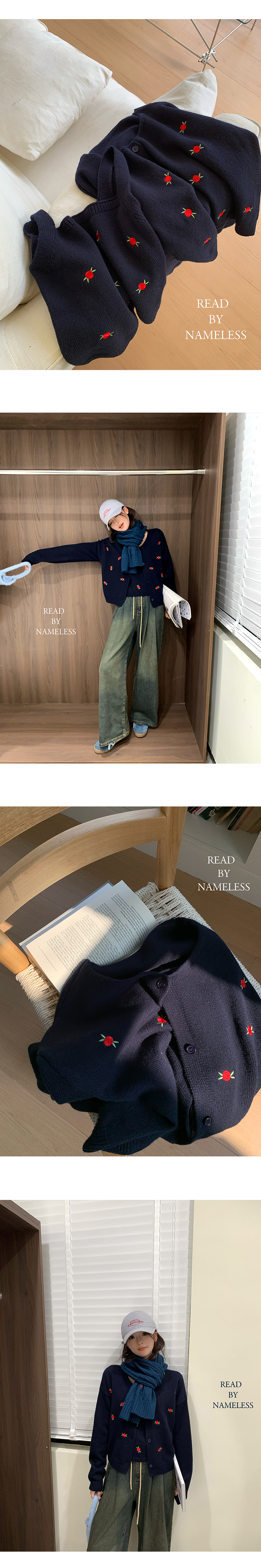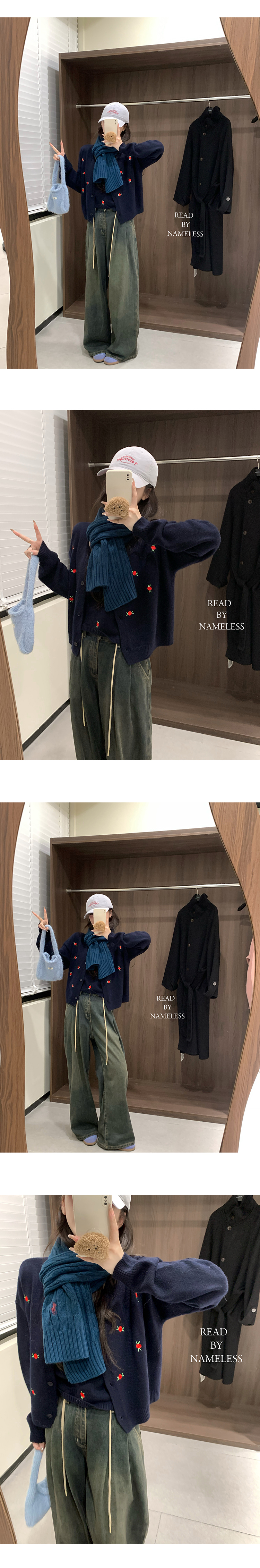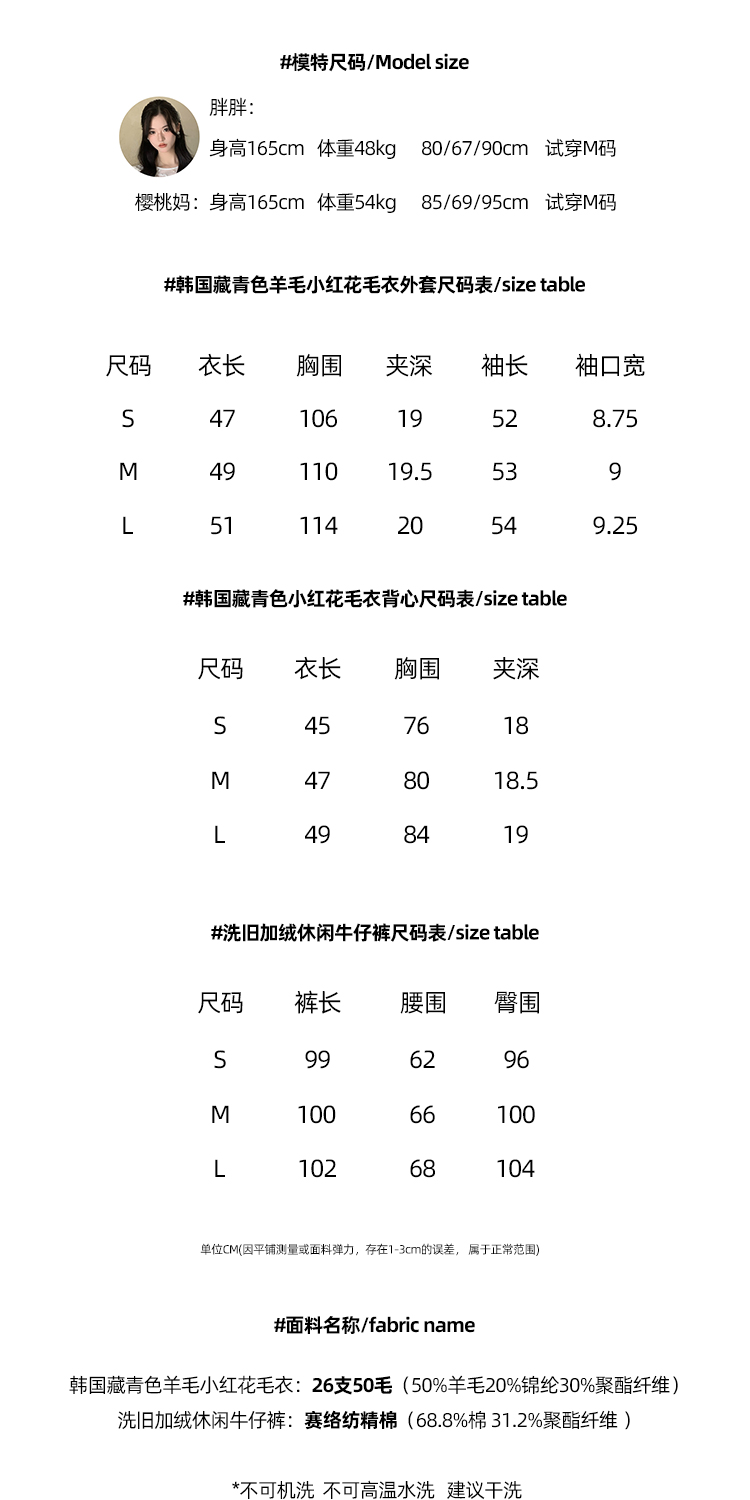 Read Nameless /韩国藏青色羊毛小红花毛衣+洗旧加绒休闲牛仔裤 2024/10/26