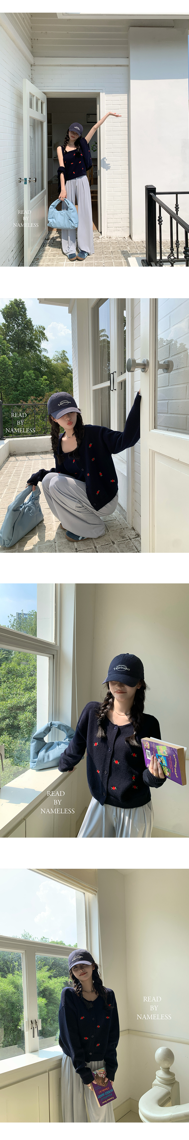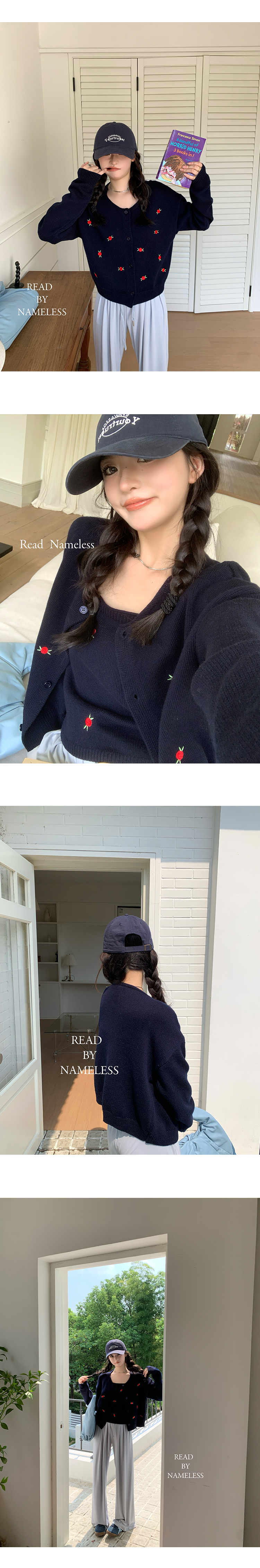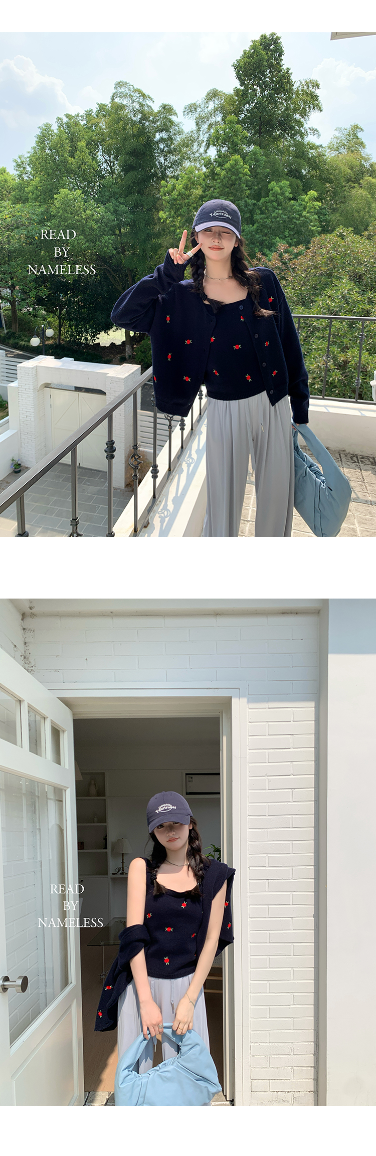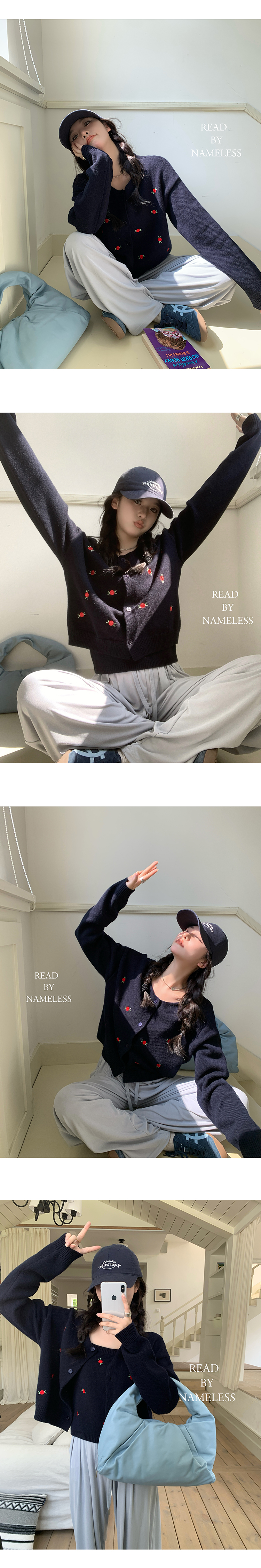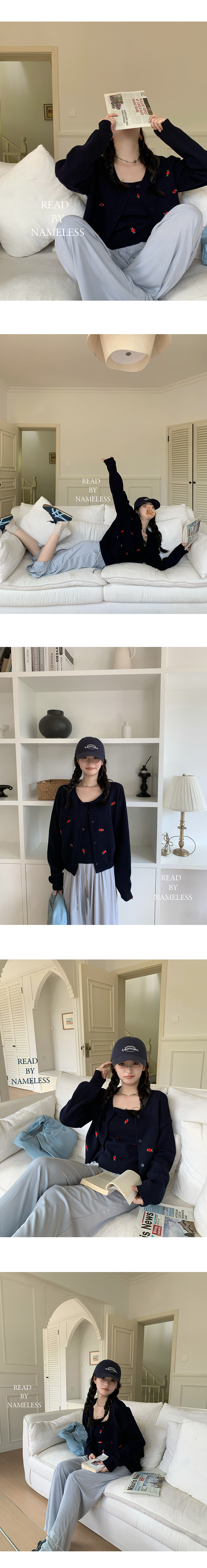 Read Nameless /韩国藏青色羊毛小红花毛衣+洗旧加绒休闲牛仔裤 2024/10/26