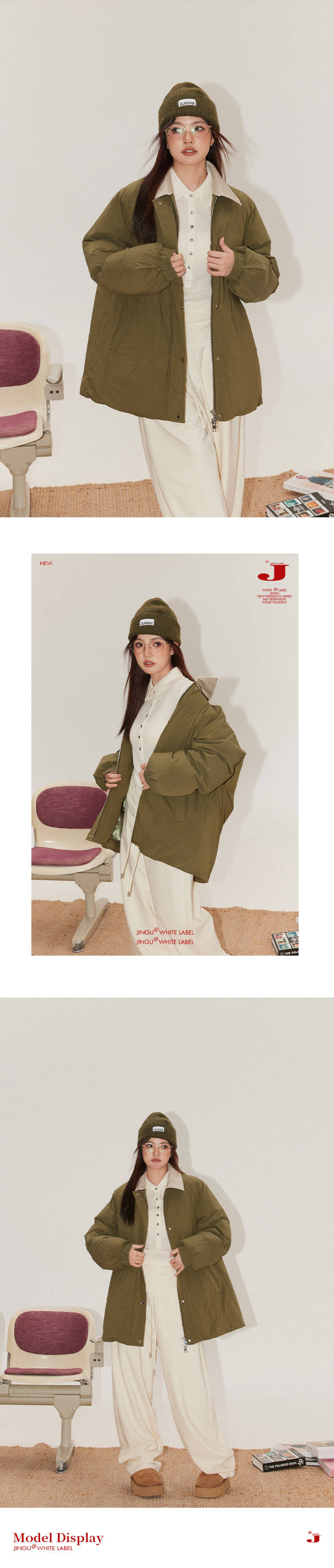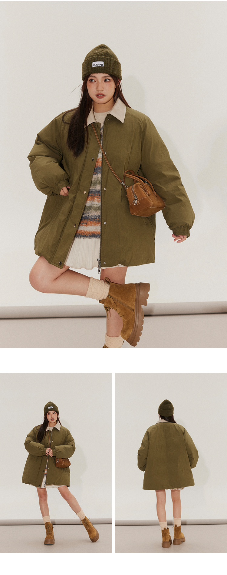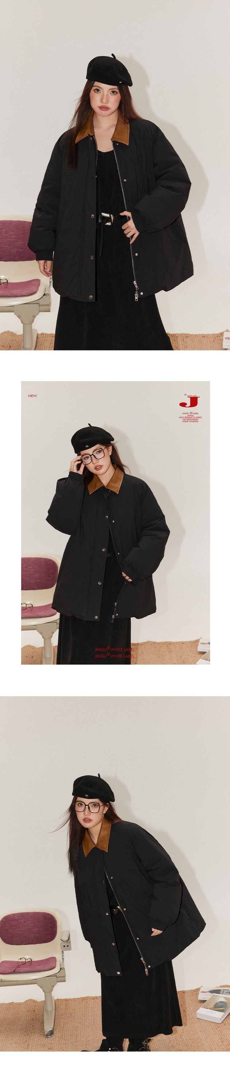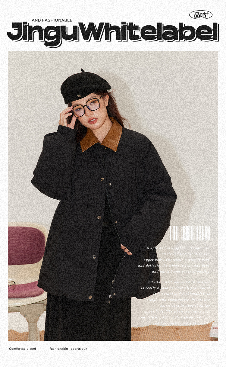 2024年新品~白标~北海道牛乳~插肩袖翻领拼色羽绒服女冬季气质保暖外套