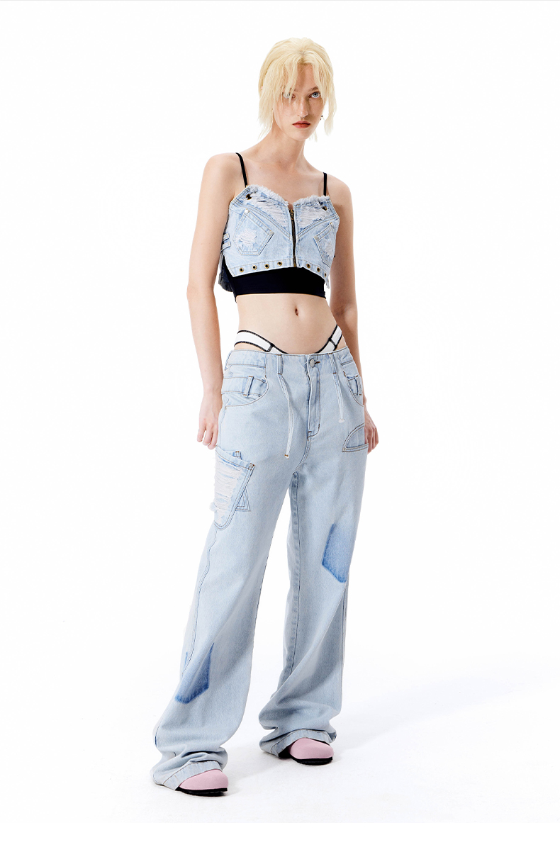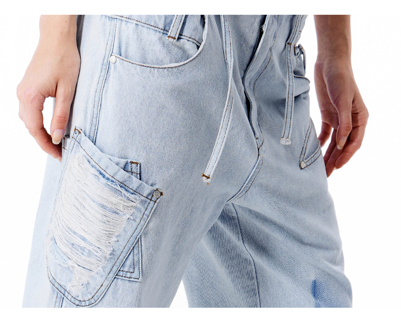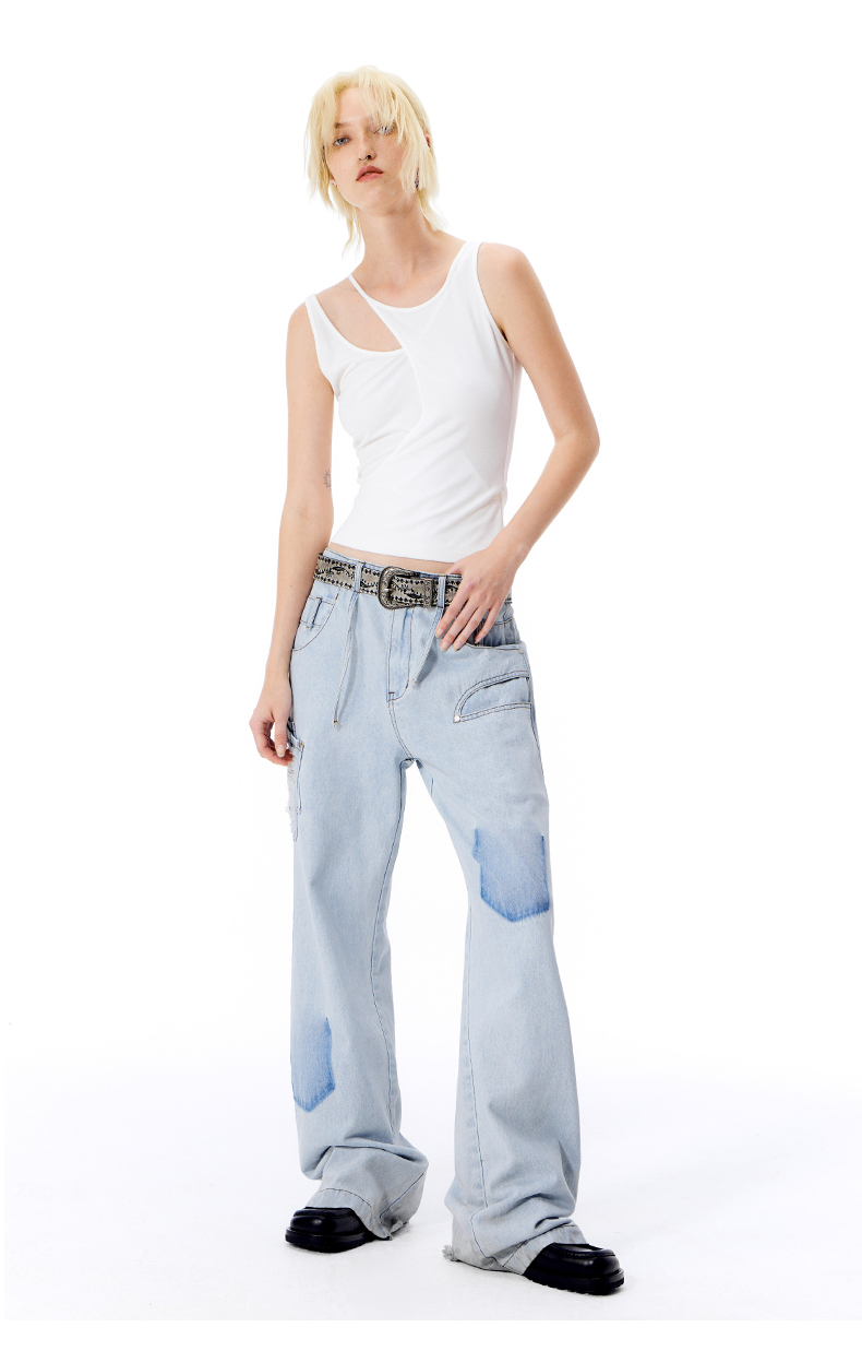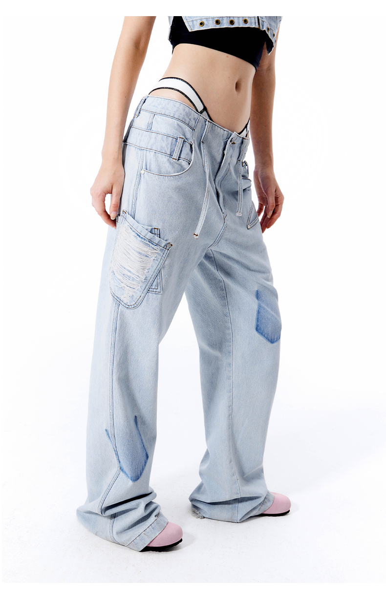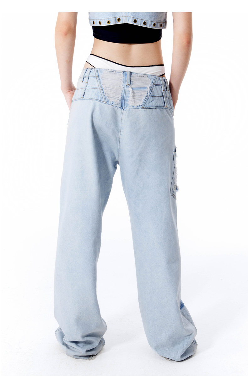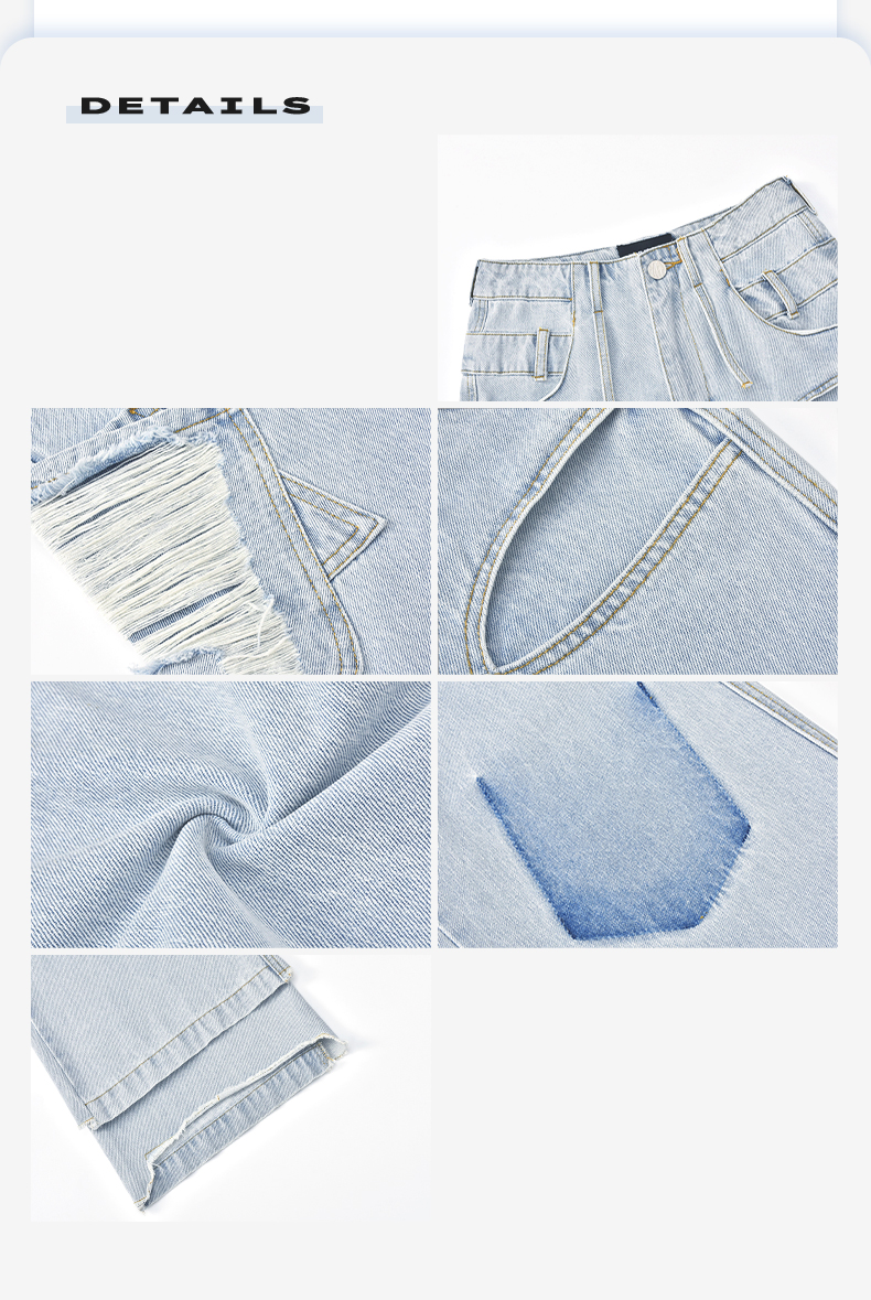 NUTH ‘宽松不限制’ 直筒牛仔裤夏女薄款浅色破洞牛仔裤复古洗水