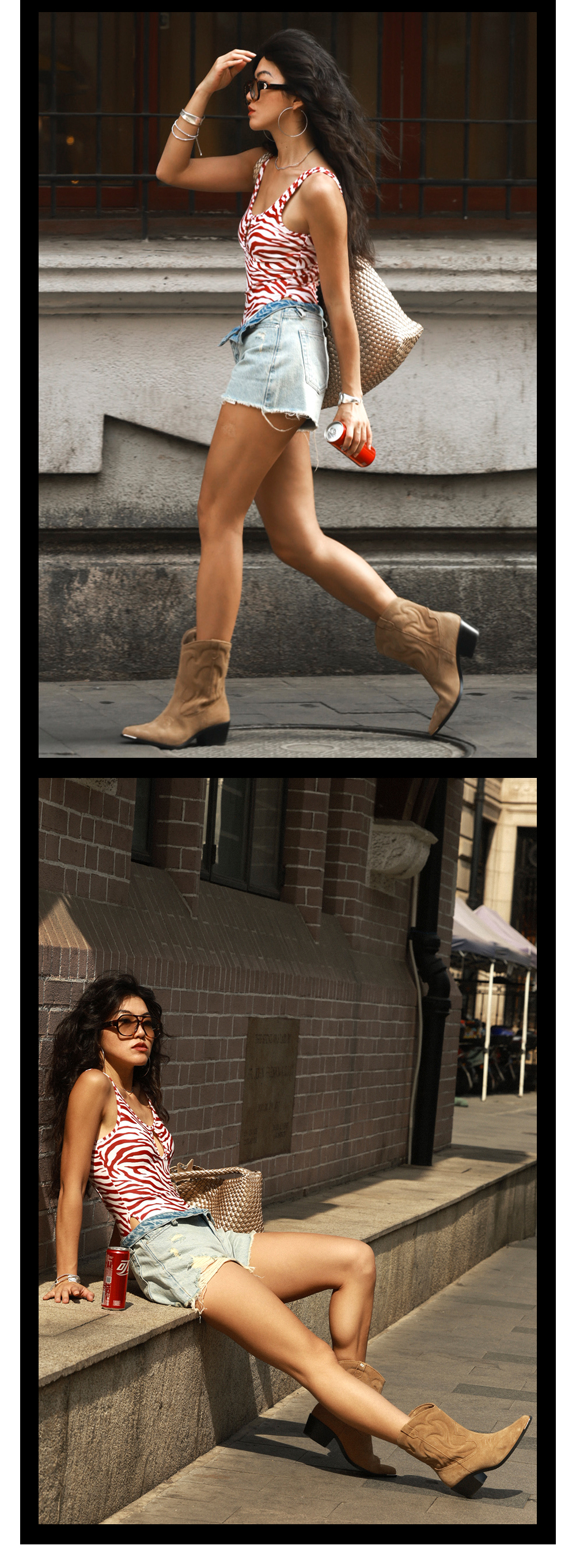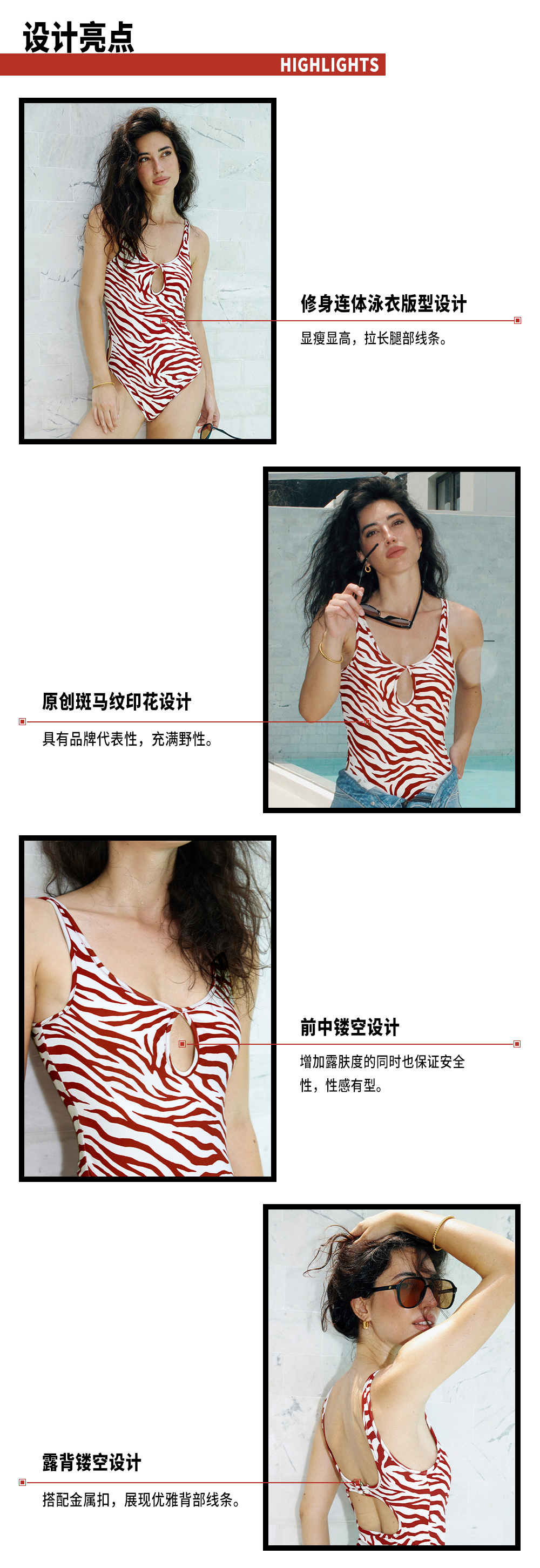 TR她热 阳光斑马 红白撞色斑马纹镂空设计感度假显瘦露背连体泳衣
