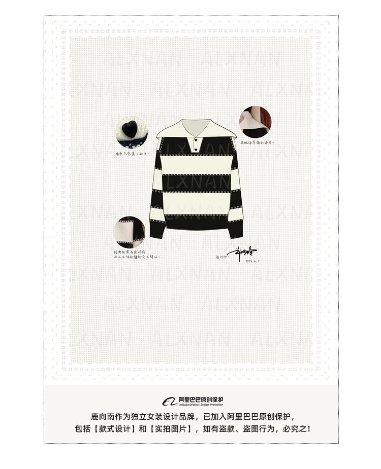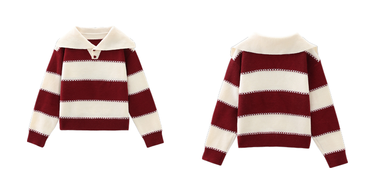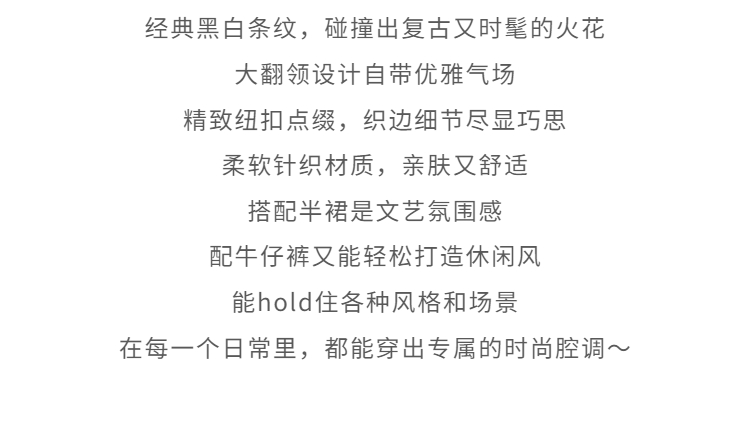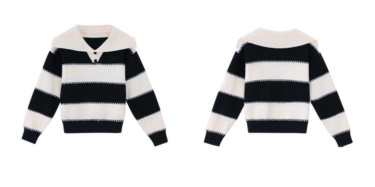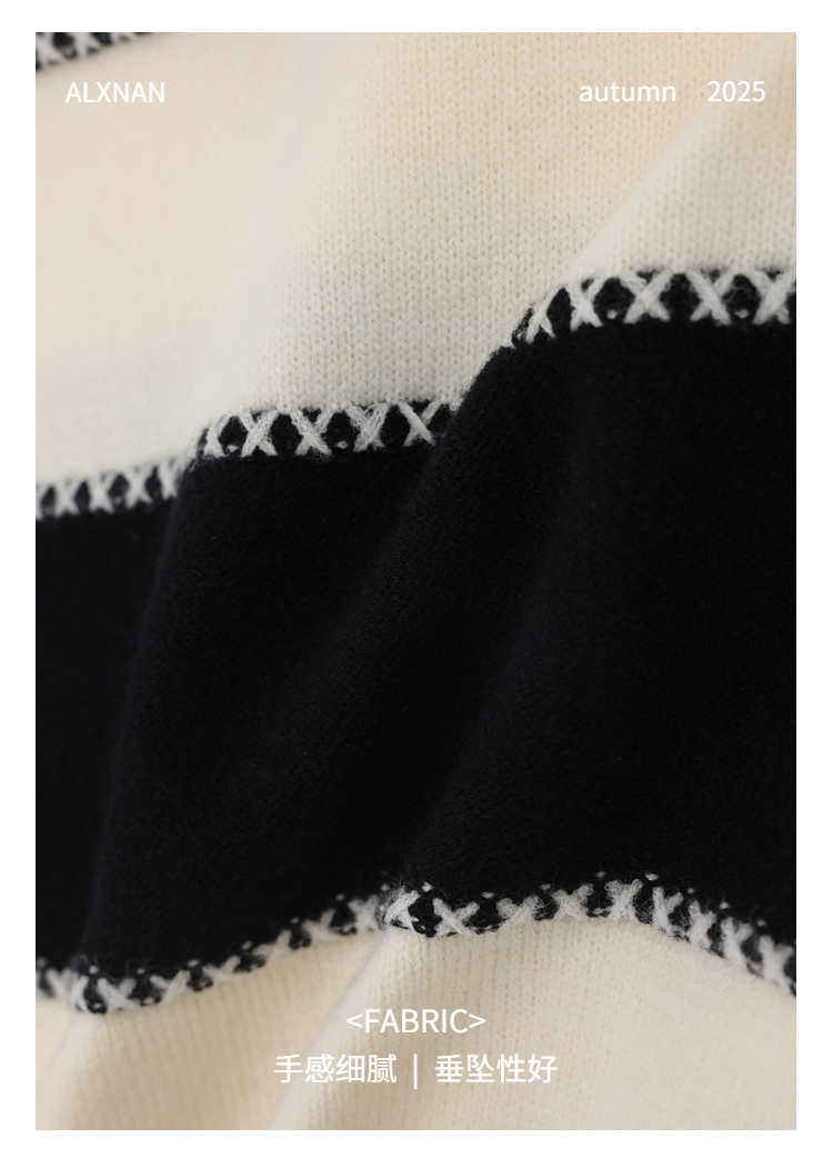 鹿向南「晚冬回信」黑白条纹翻领针织衫毛衣女秋宽松慵懒显瘦上衣