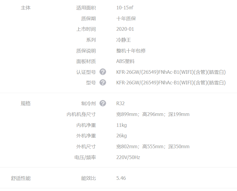 格力/空调/KFR-26GW/(26549)FNhAc-B1(WIFI)/(含管)(皓雪白)冷静王 大1匹 新一级能效 变频冷暖 挂机空调