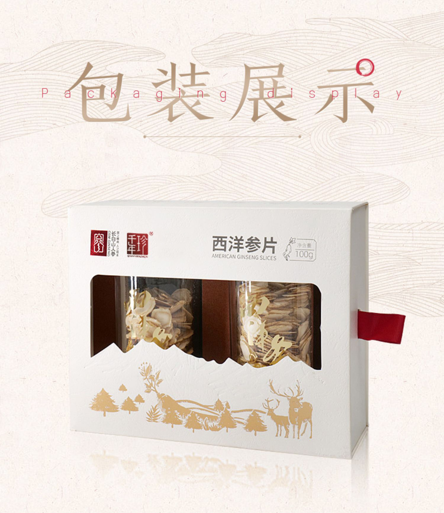 千年珍X吉山宝X长白山人参 西洋参片礼盒大片 100g(50g*2瓶)/盒