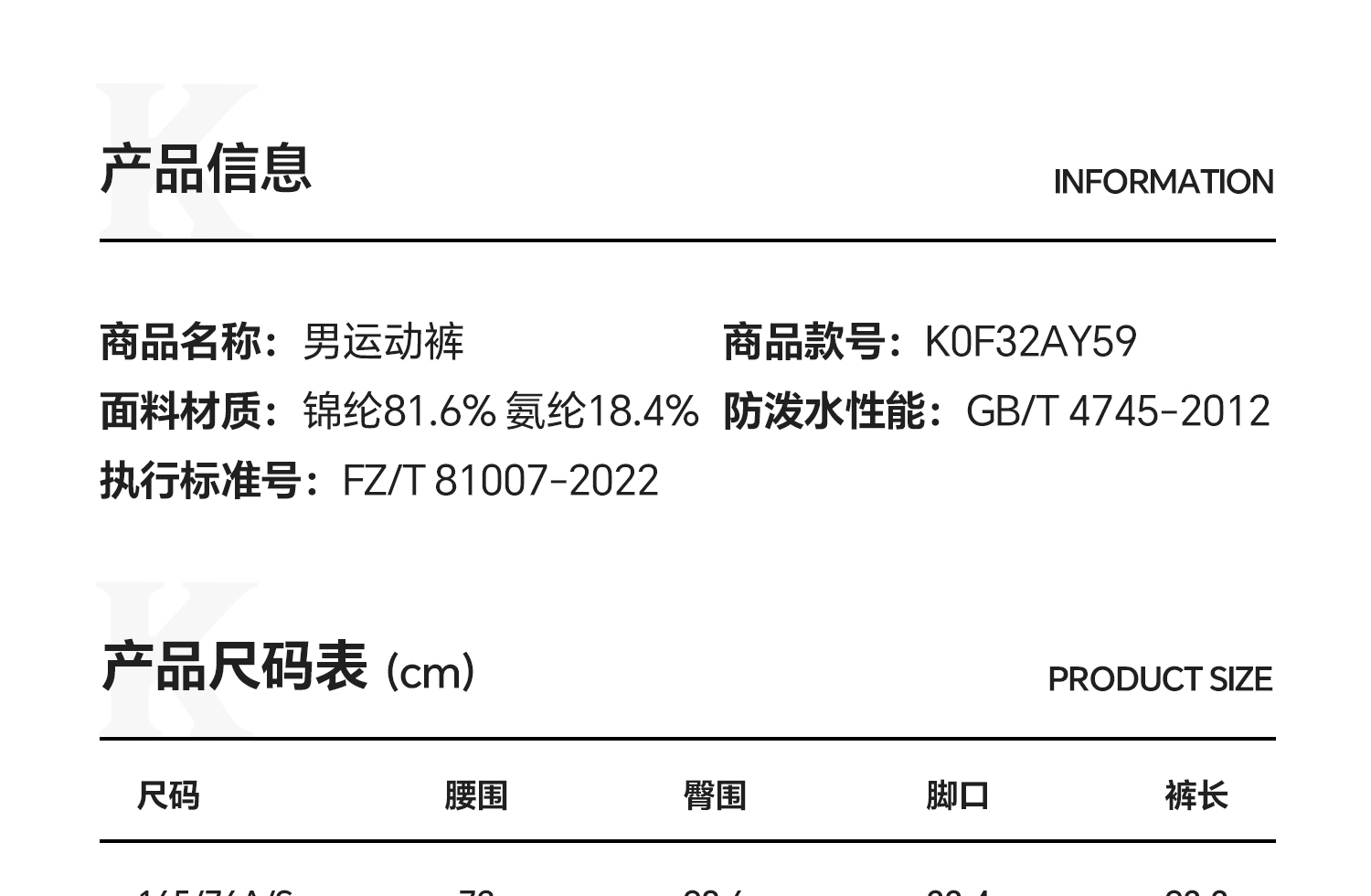 Kappa卡帕背靠背运动裤男士新款防泼水休闲裤直筒弹力裤跑步长裤K0F32AY59