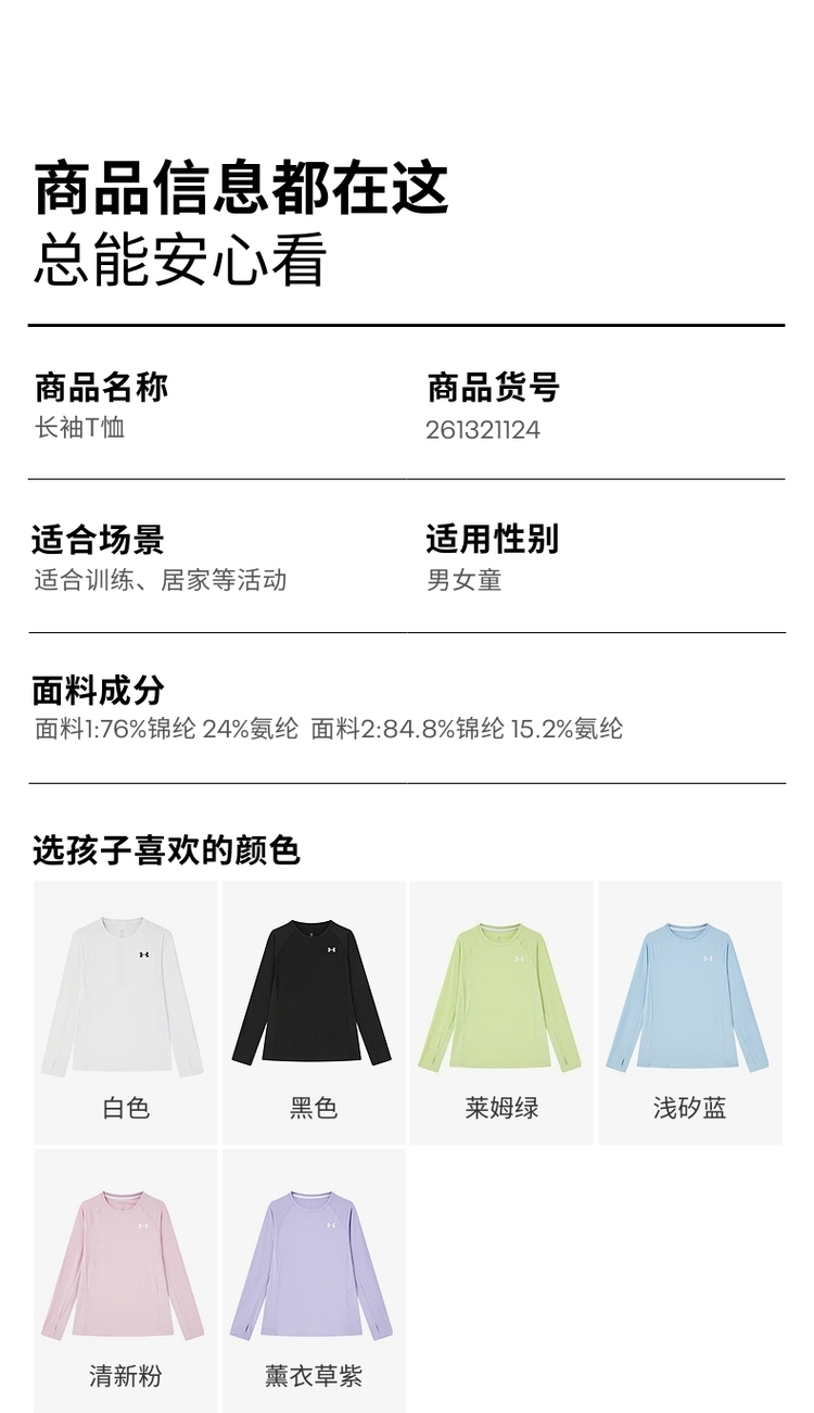 【特惠福利】Under Armour安德玛儿童 吸湿速干透气长袖T恤 261321124