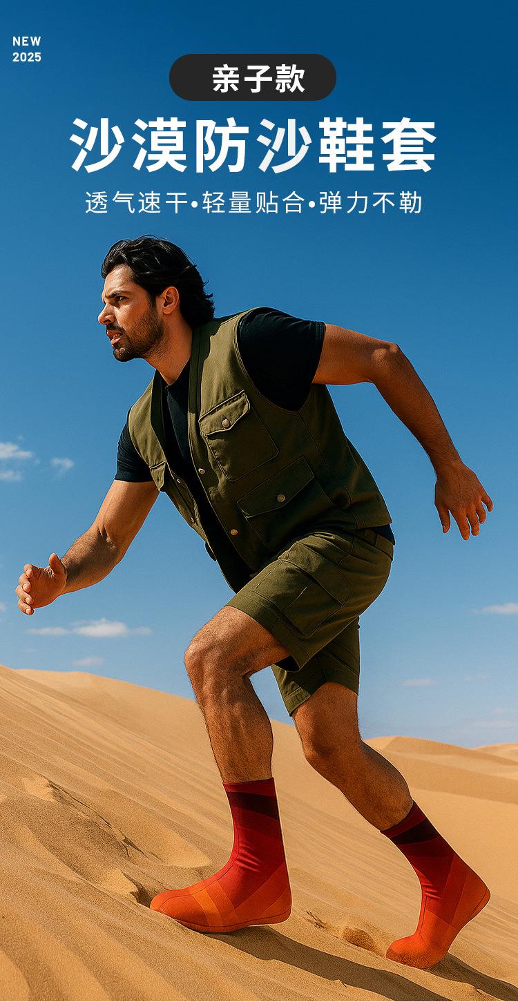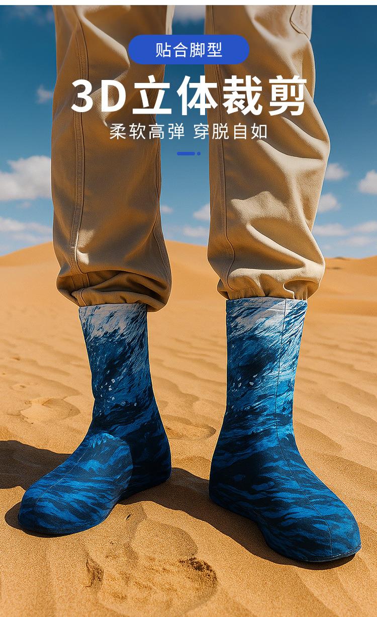 茶卡盐湖加高款沙漠防沙鞋套耐磨徒步装备涂鸦印花亲子款玩沙脚套