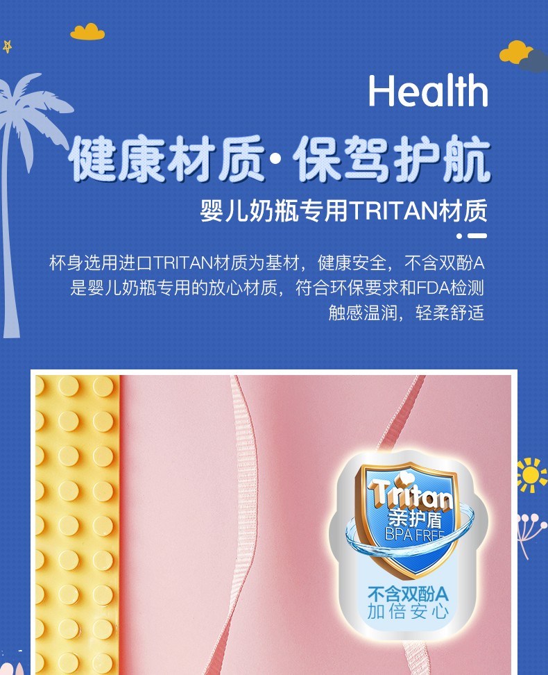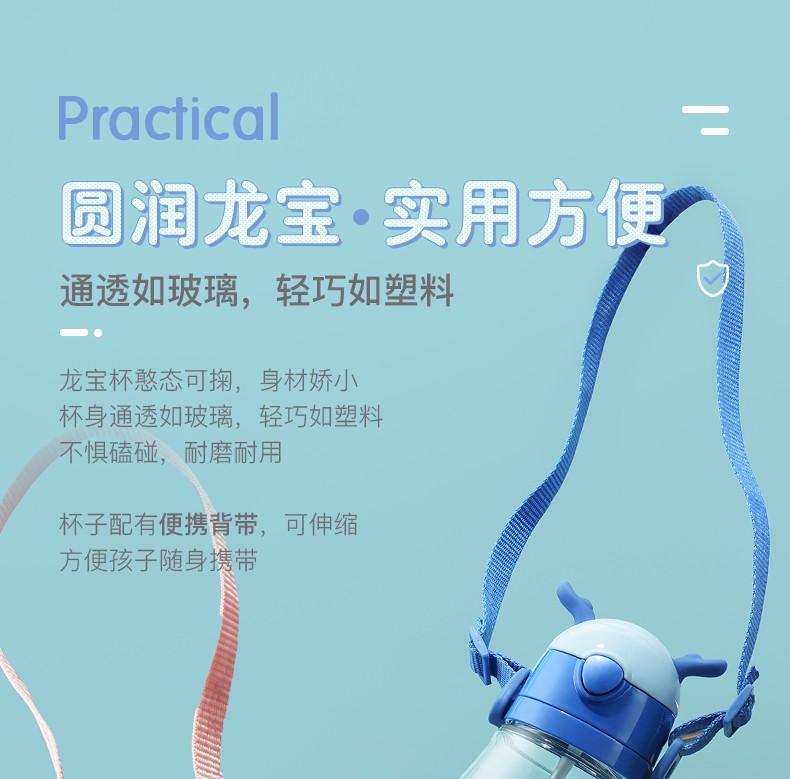 爱仕达 龙宝系列随身杯 480ml儿童吸管水杯 进口tritan材质杯子 RWP48B3Q