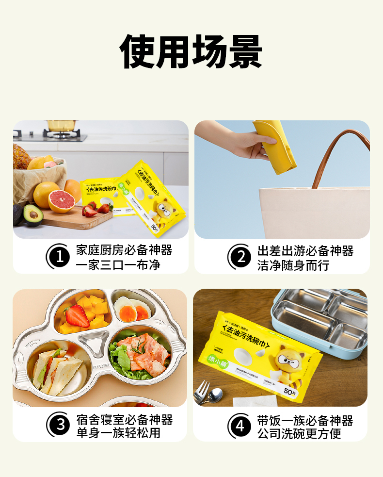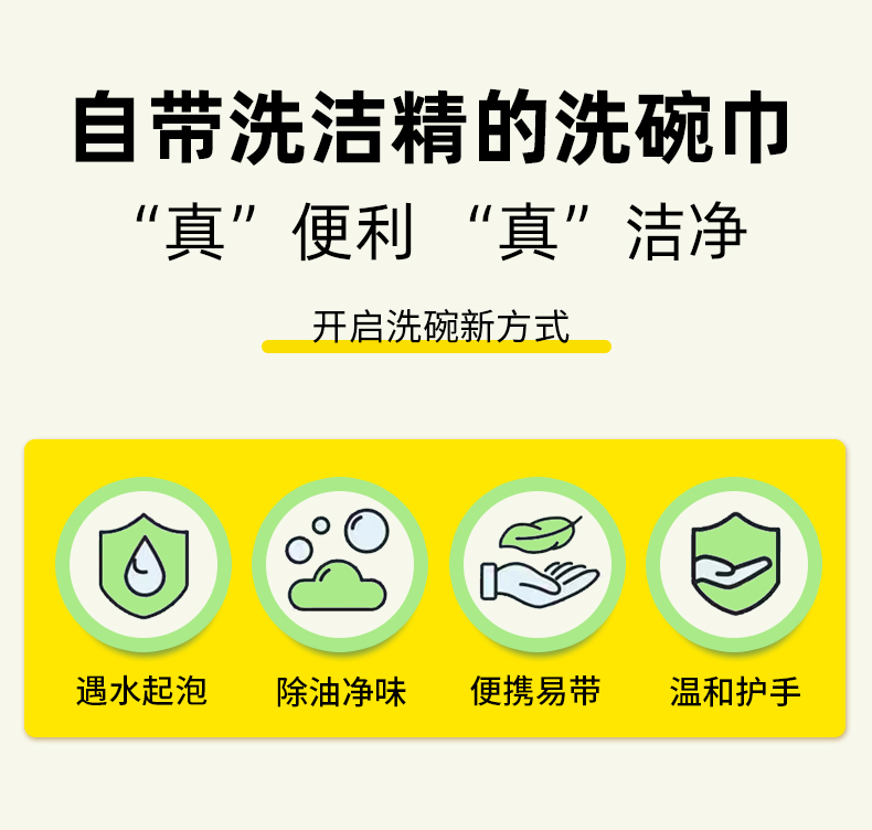 涤小萌一次性洗碗巾便携式自带洗洁精小瓶迷你宿舍厨房懒人抹布