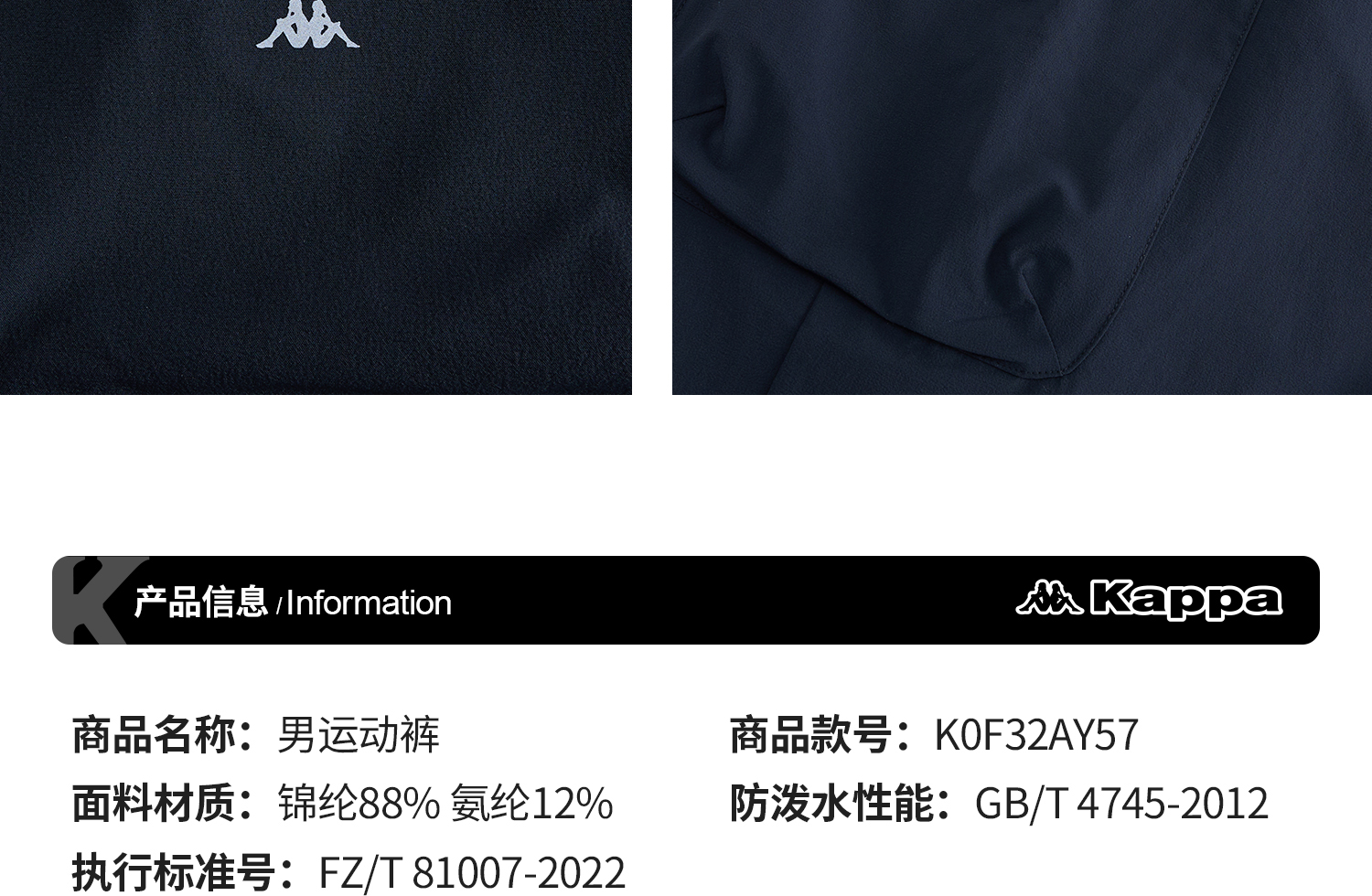Kappa卡帕背靠背防泼水运动裤2025新款男户外弹力休闲长裤直筒裤K0F32AY57