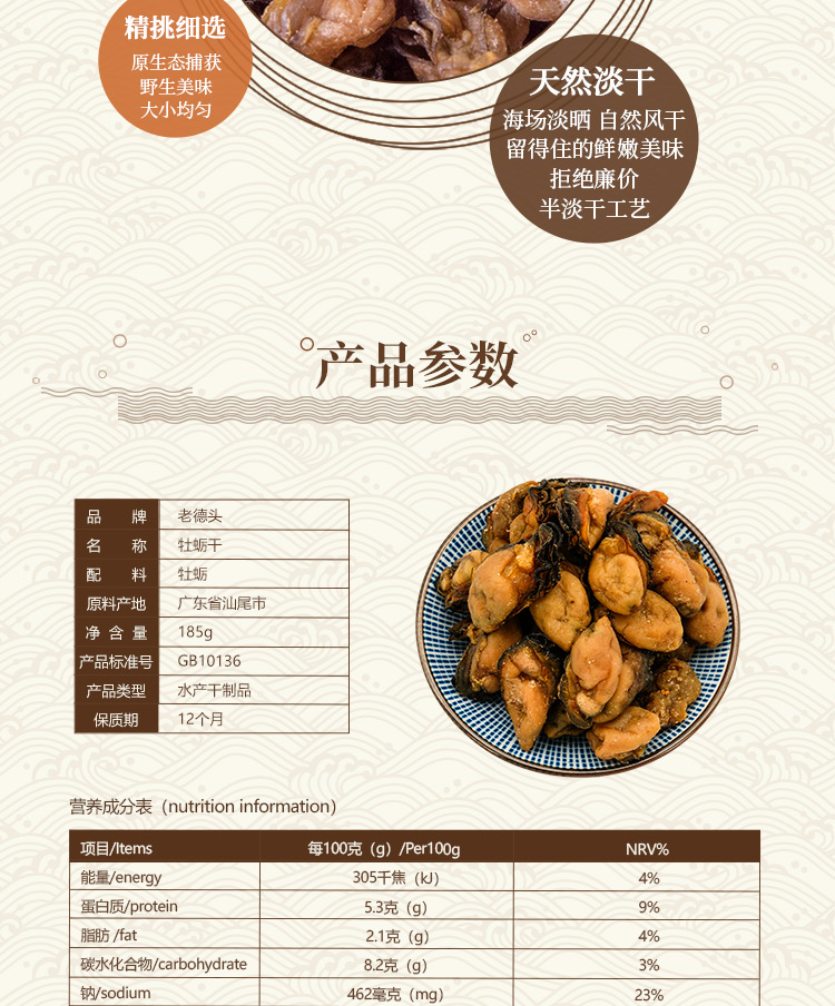 牡蛎干 海蛎干 生蚝干 海鲜干货 185g/罐