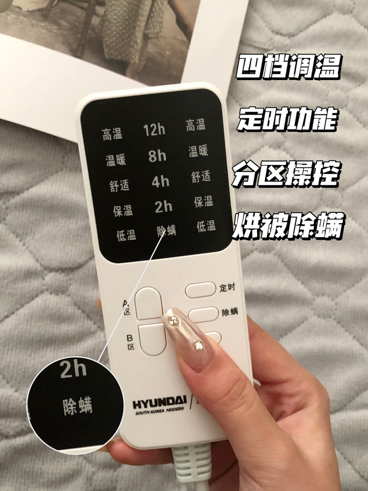 还有调节温度、功率、定时、除螨等都主要靠它来实现。 最最重要的是,不像传统电热毯一样无法调节,温度可以任意调节,你喜欢的温度它都有