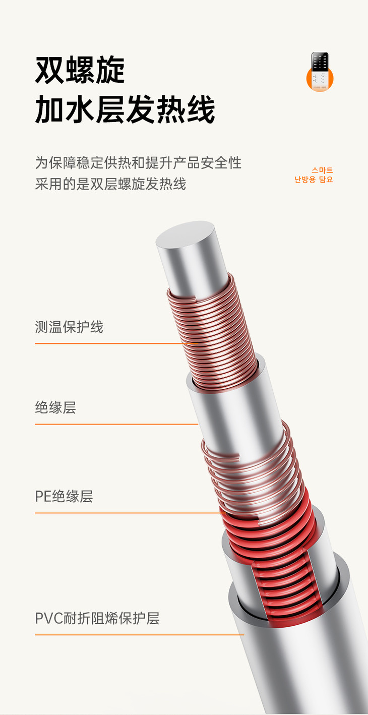 双螺旋发热丝 多重高效防护 升级发热线,自带温度检知线,温控精准,防水阻燃拒绝安全隐患