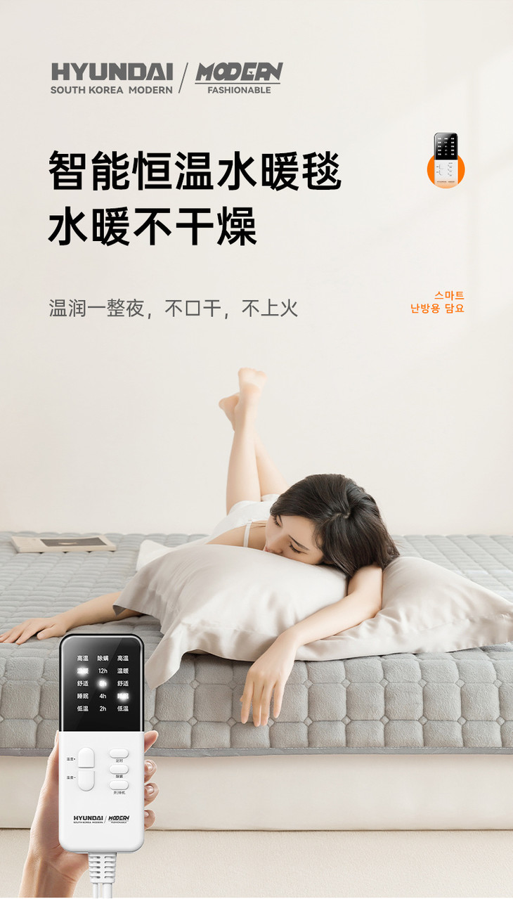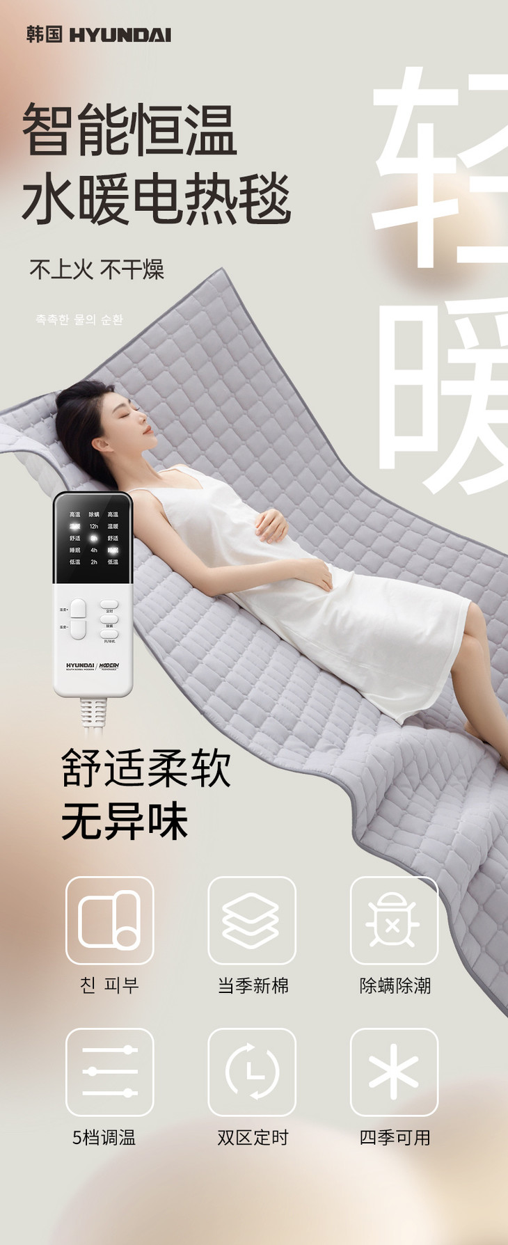 【产品名称】HYUNDAI韩国现代智能恒温水暖电热毯