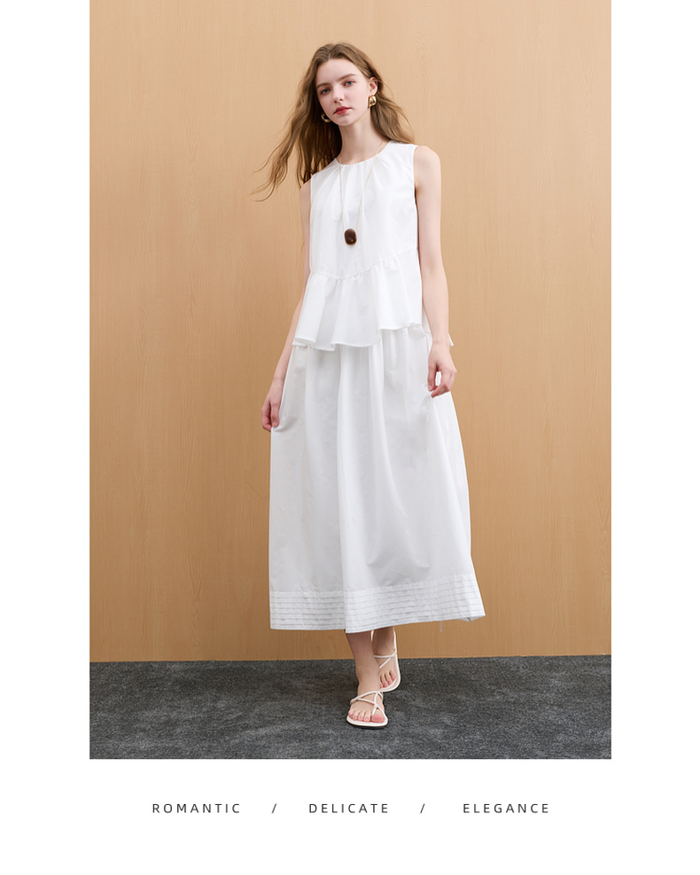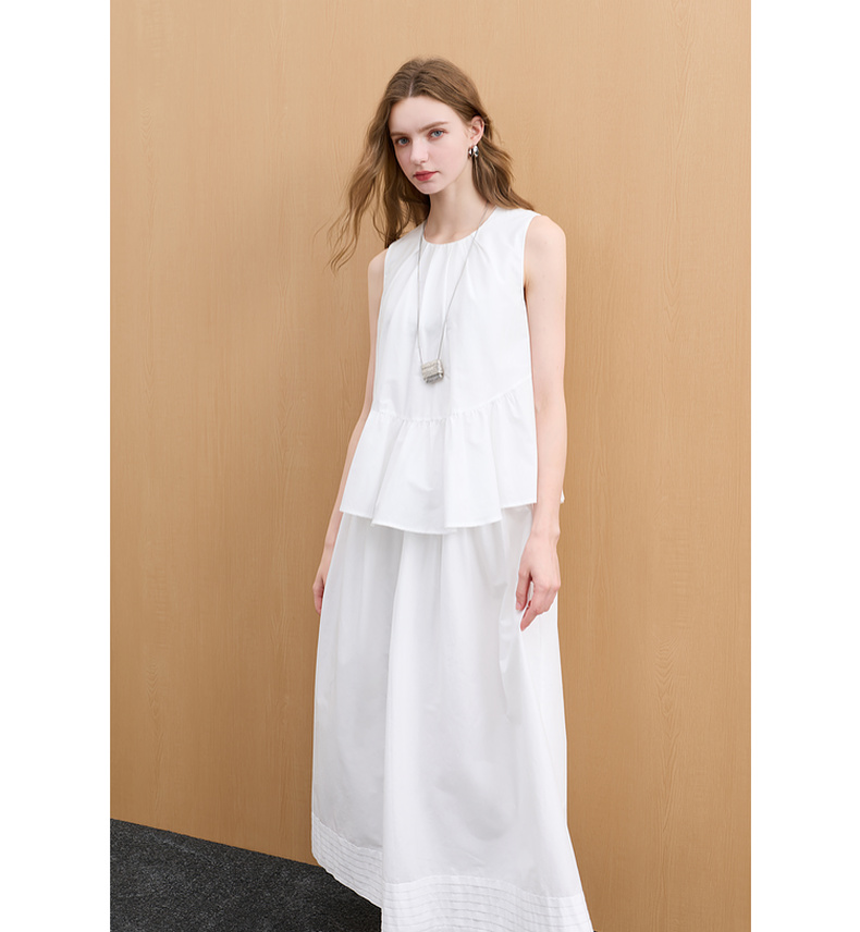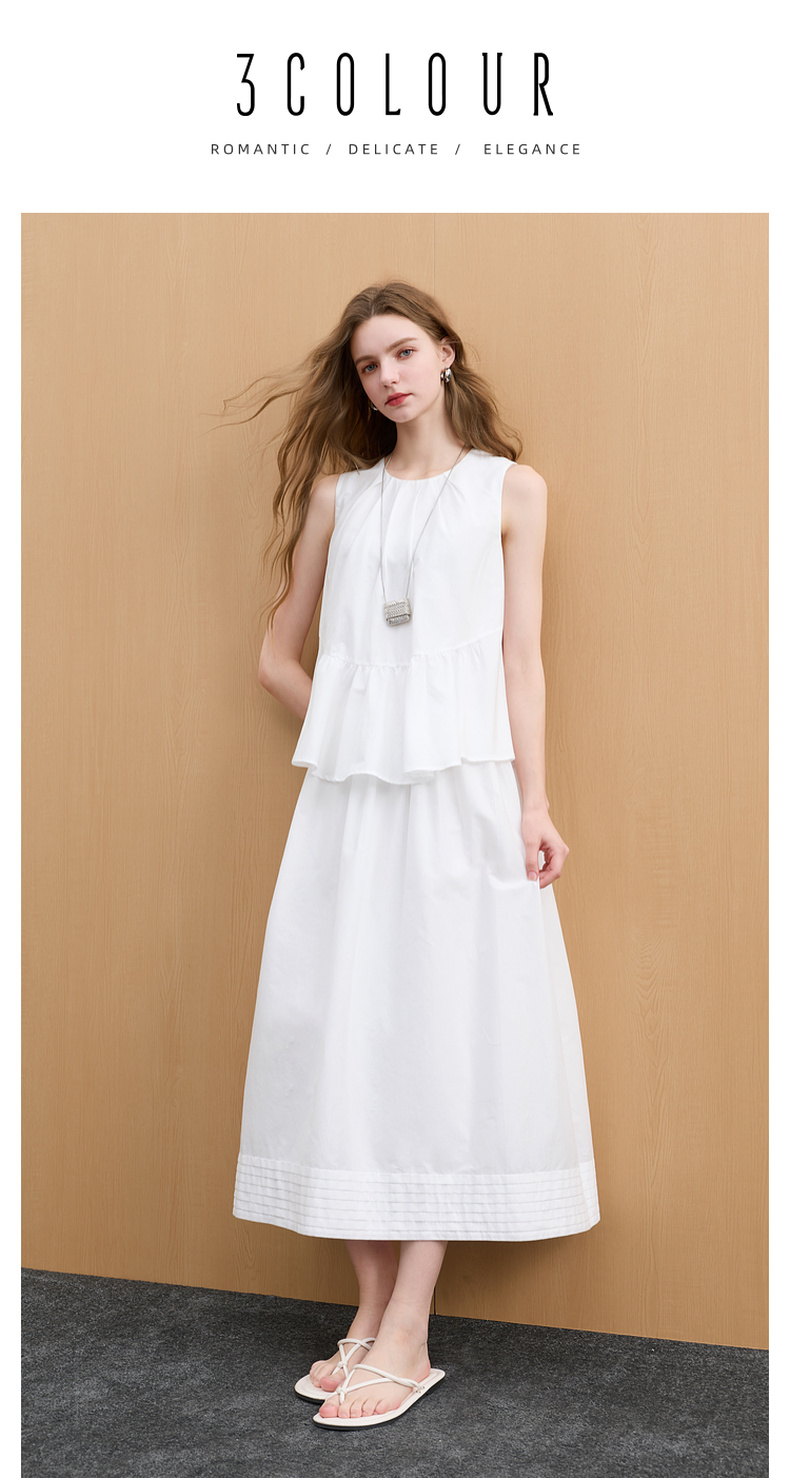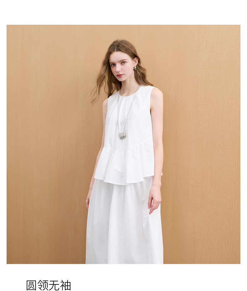 【100棉】三彩2025夏新款圆领无袖假两件连衣裙背心裙宽松设计感M