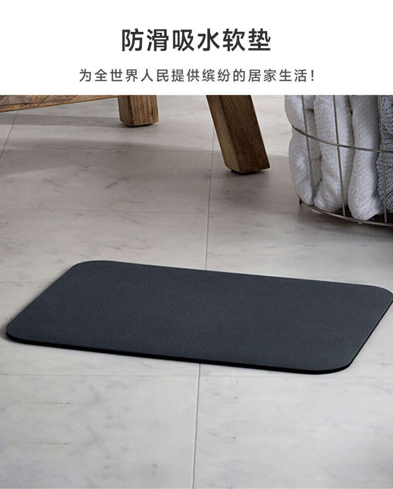 防滑硅藻土吸水软垫 47x80 淡灰/深灰