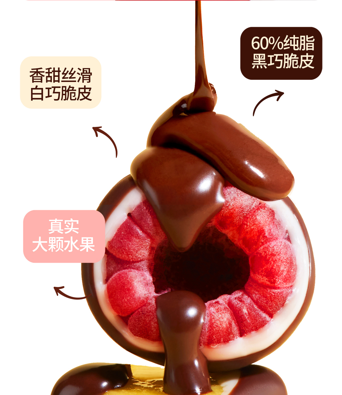 【首创鲜果冰淇淋】鲜果脆巧冰 巧克力脆皮与缤纷果肉双重搭配 0蔗糖配方降低甜腻感