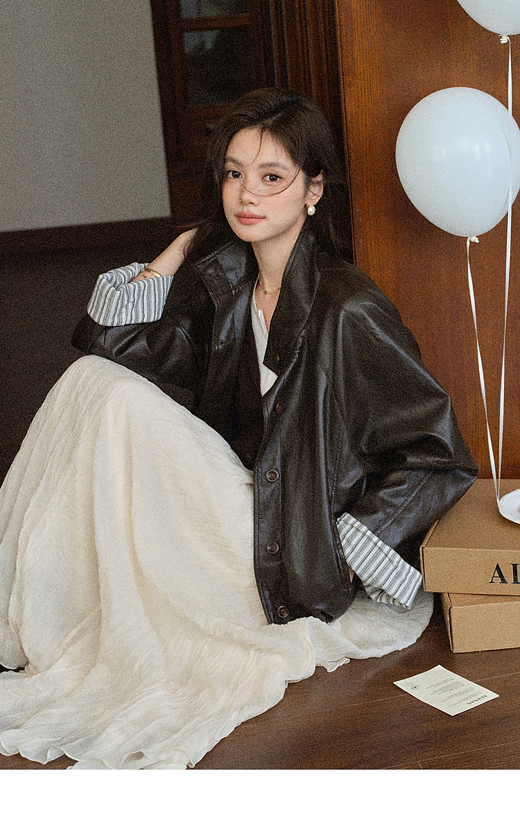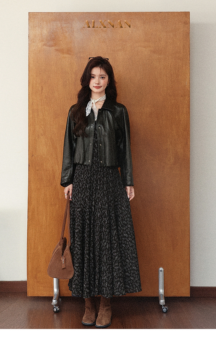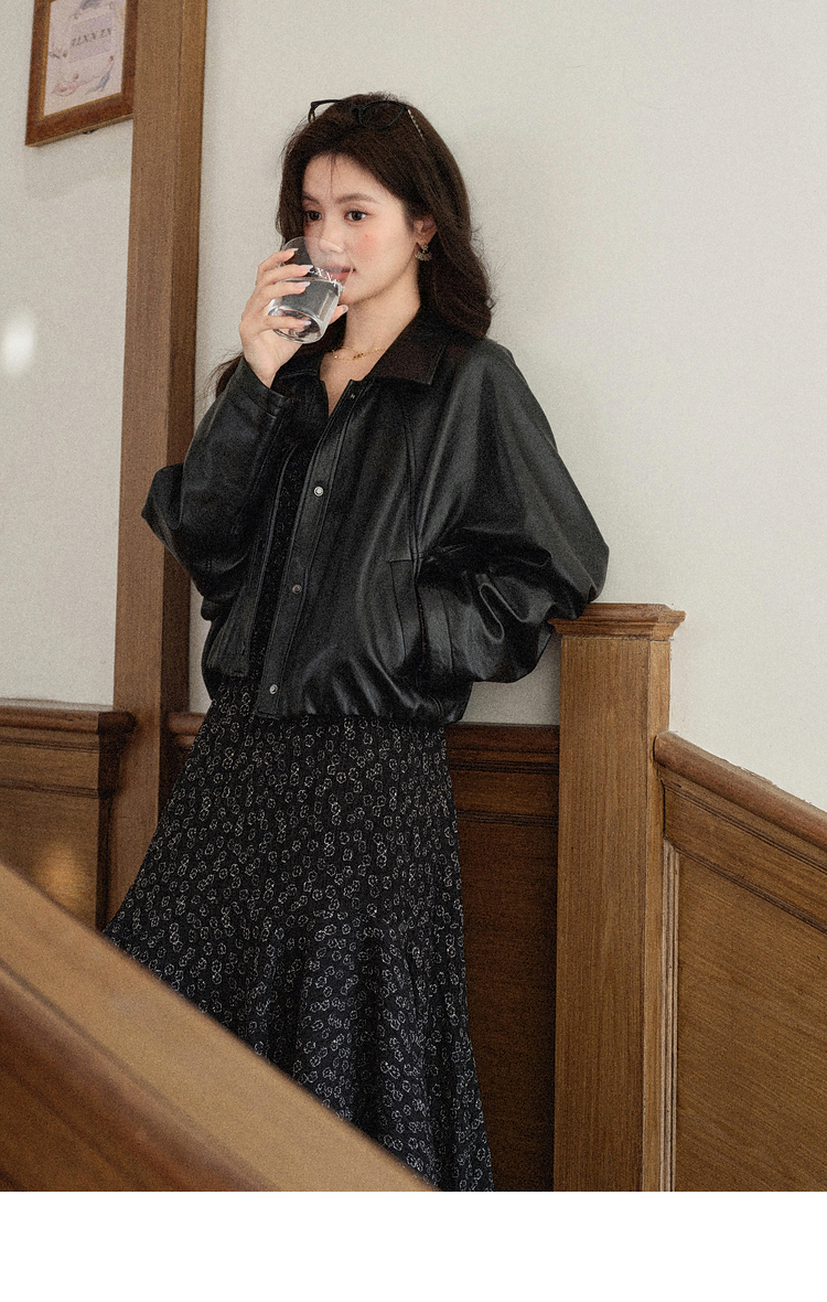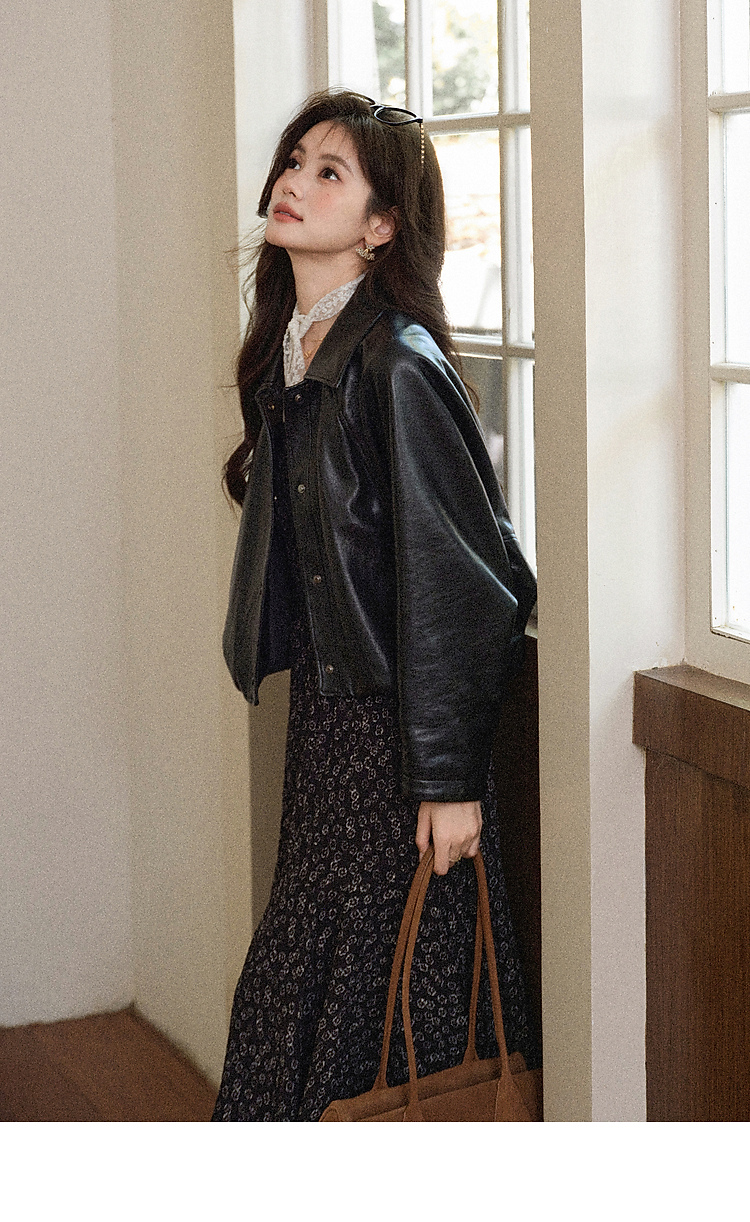 鹿向南「月光罗曼」气质黑色皮衣减龄休闲气质复古外套上衣女初秋