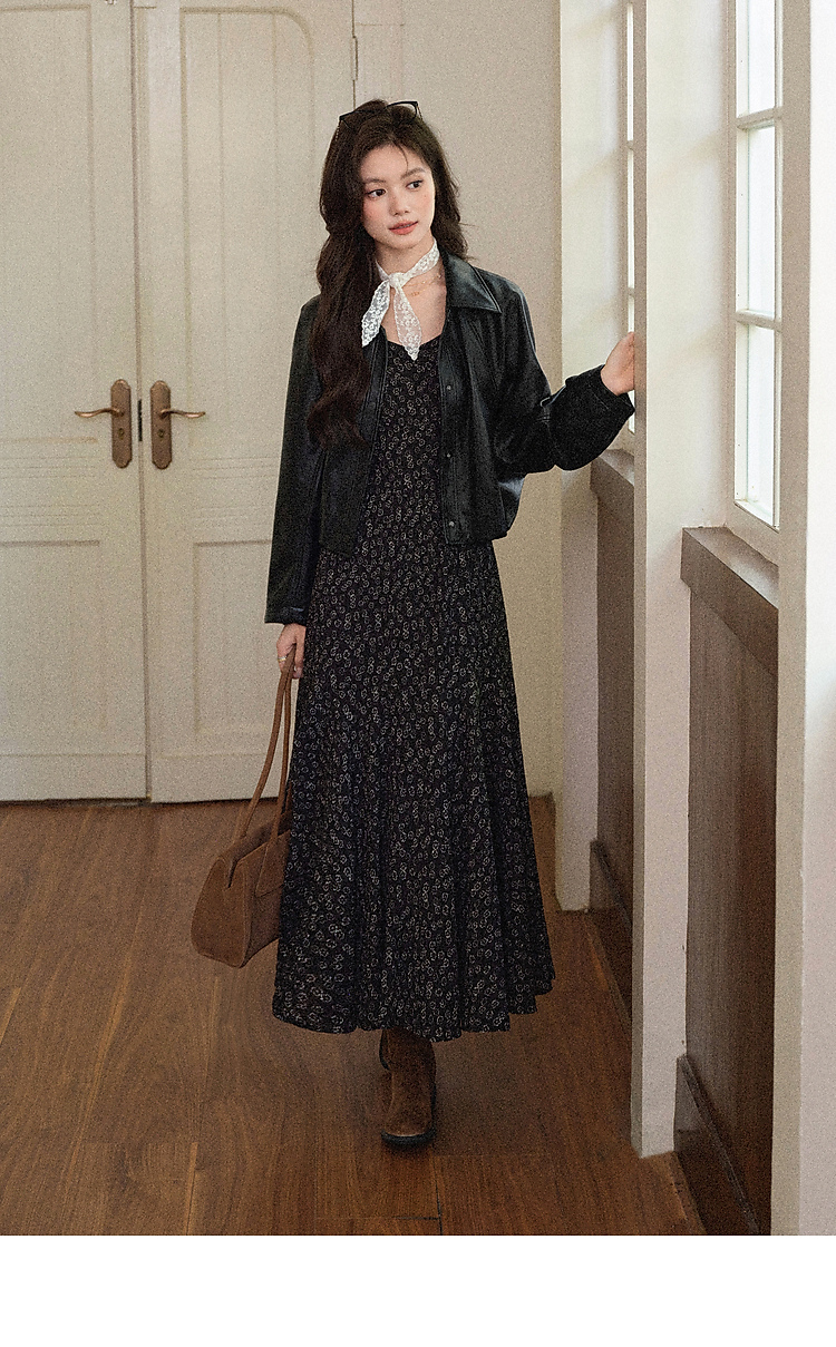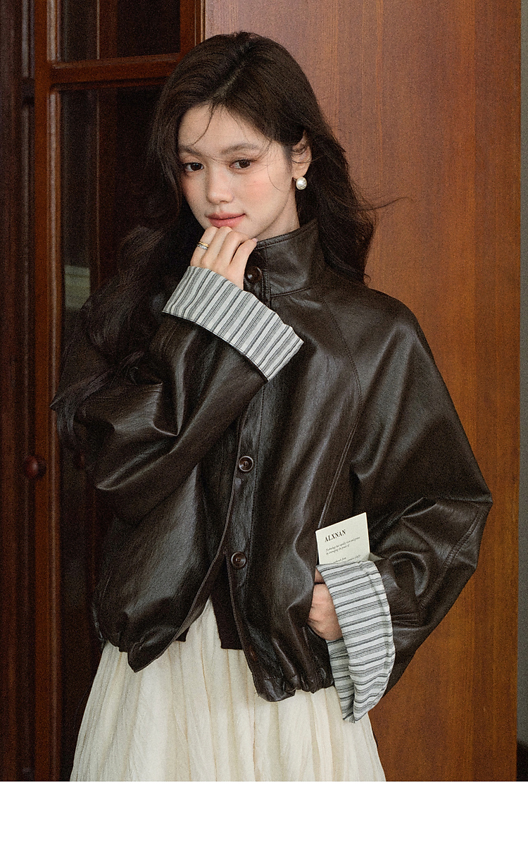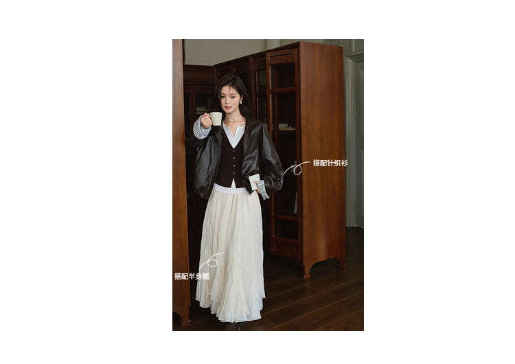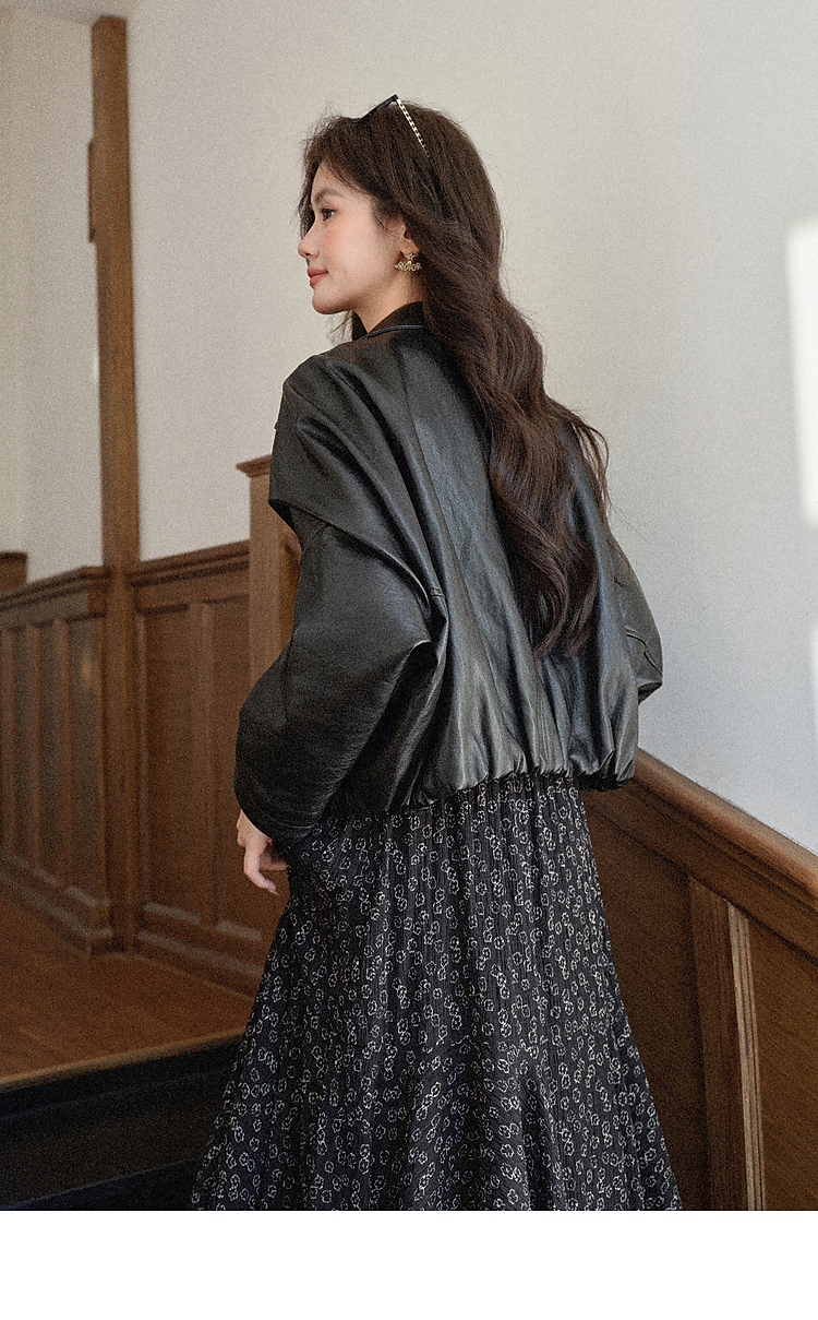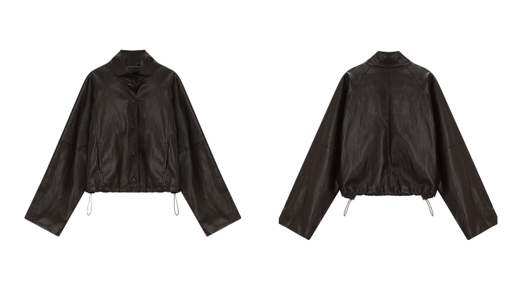 鹿向南「月光罗曼」气质黑色皮衣减龄休闲气质复古外套上衣女初秋