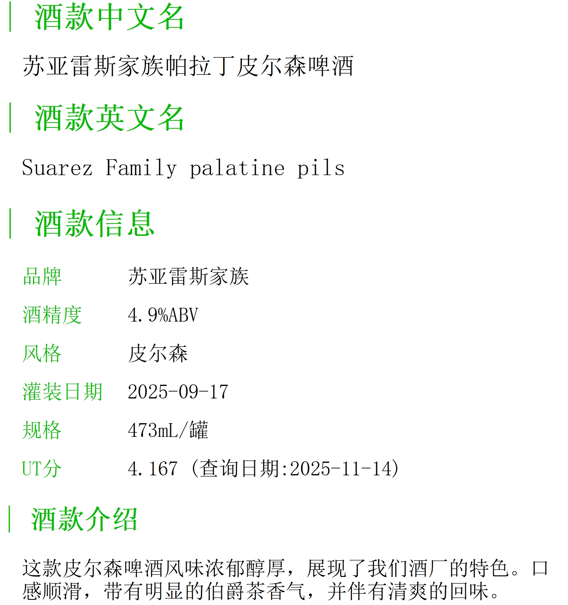 苏亚雷斯家族帕拉丁皮尔森啤酒