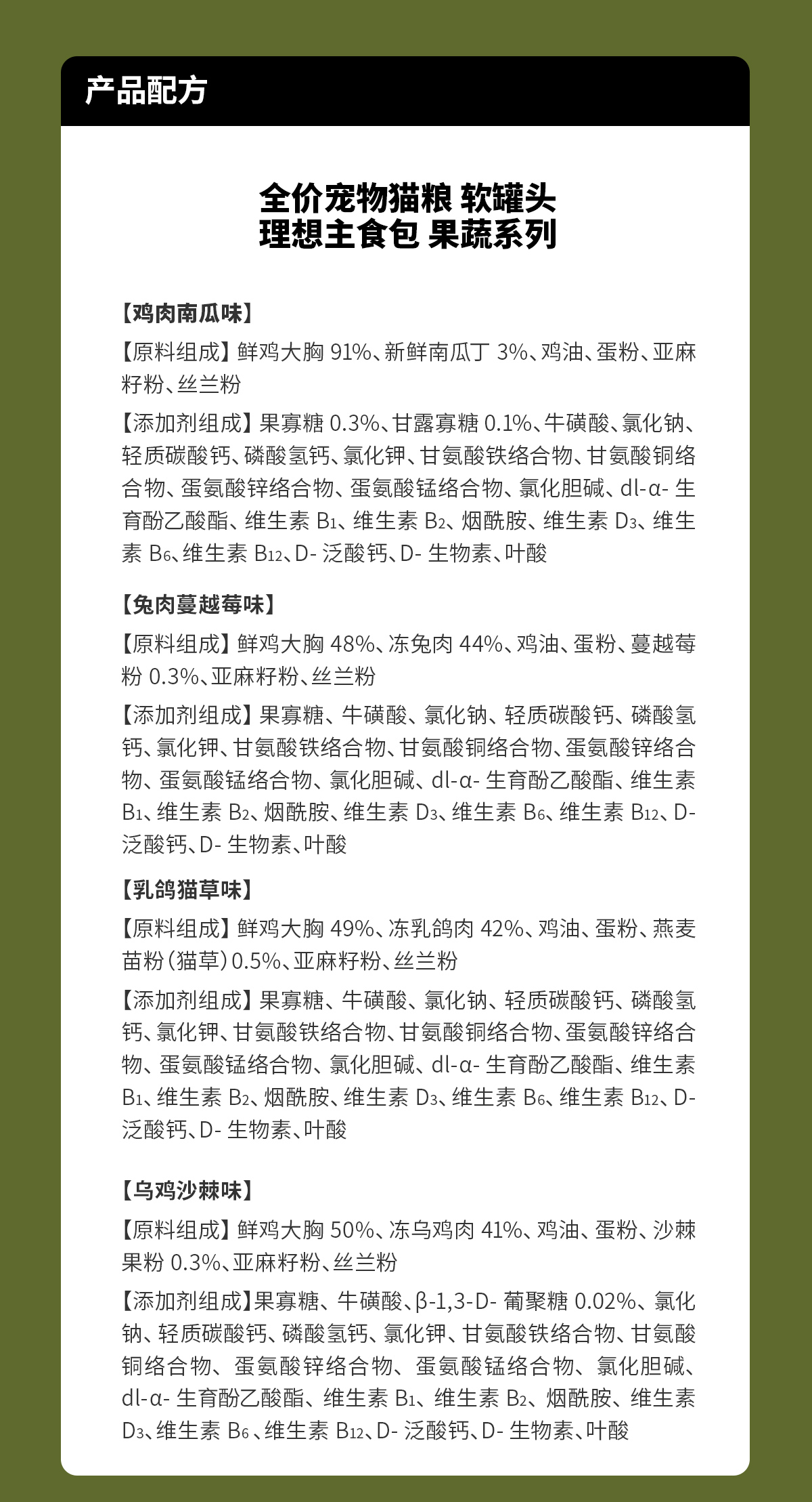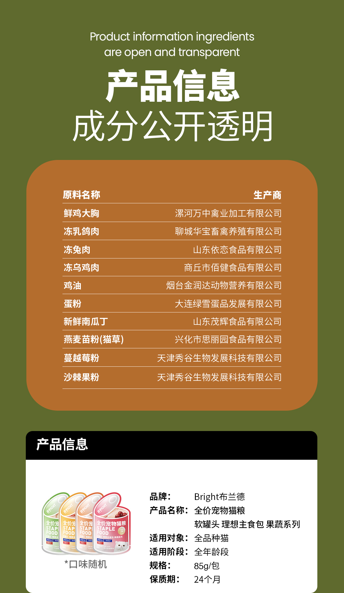 布兰德全价猫软罐头果蔬系列白金包340g/盒