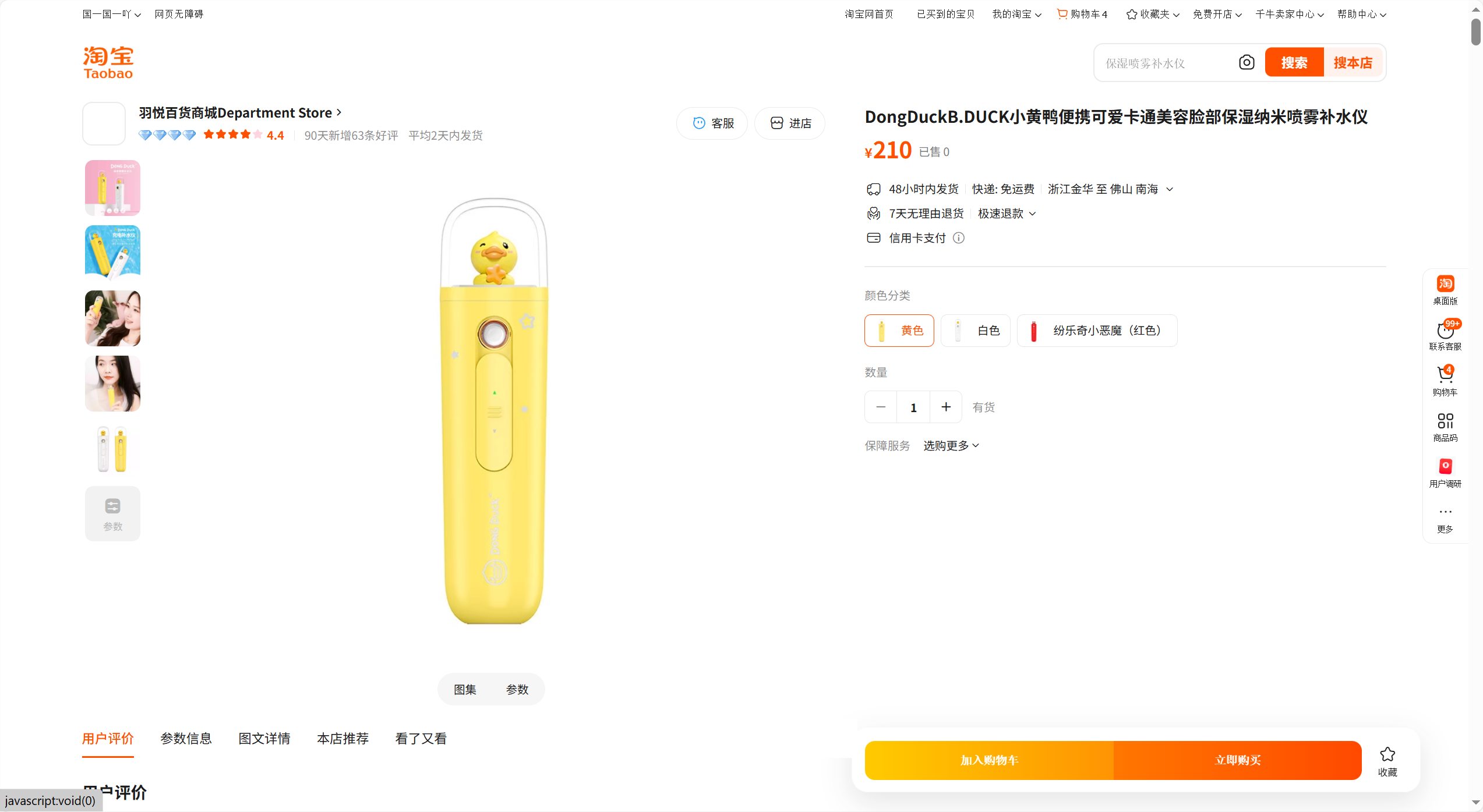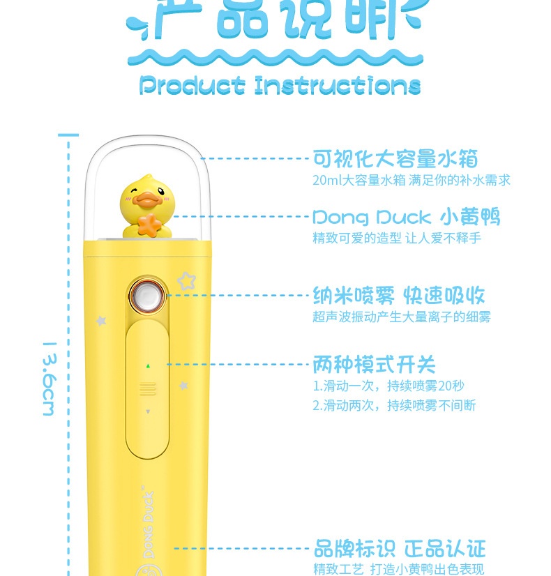 DongDuck B.DUCK小黄鸭 纳米喷雾补水仪 两种模式 一机多用