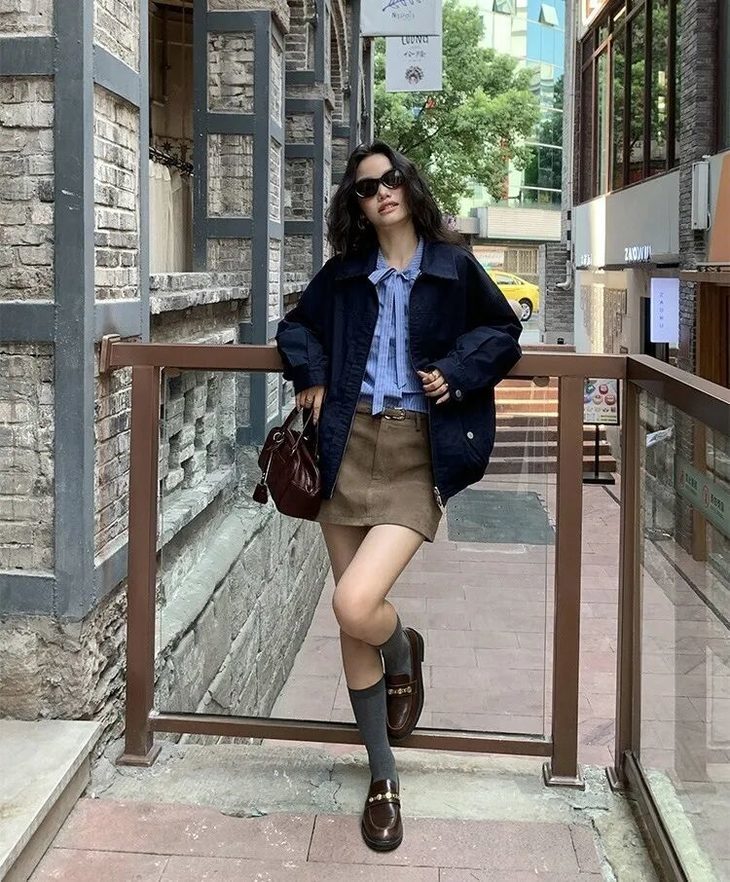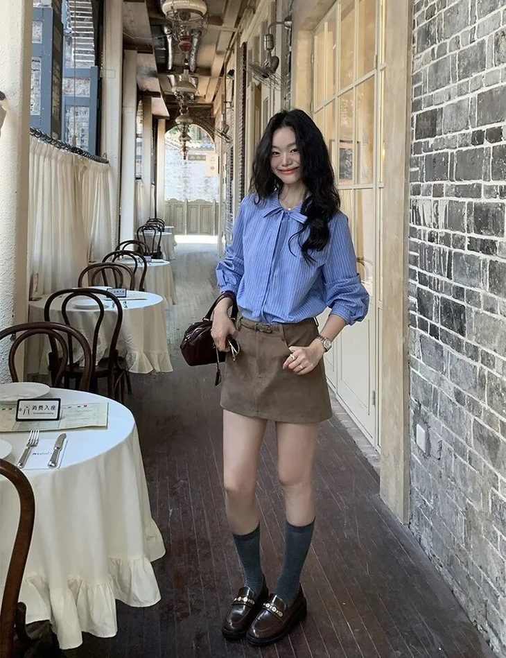 淡蓝色条纹像被秋阳筛过的光影,温柔又治愈