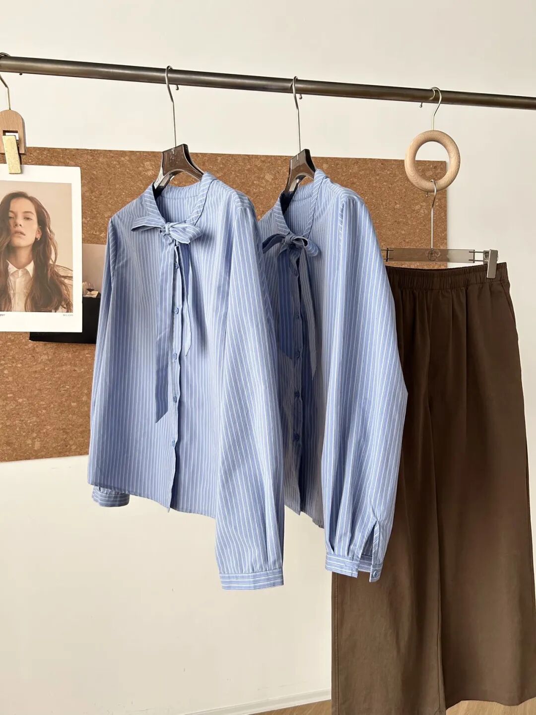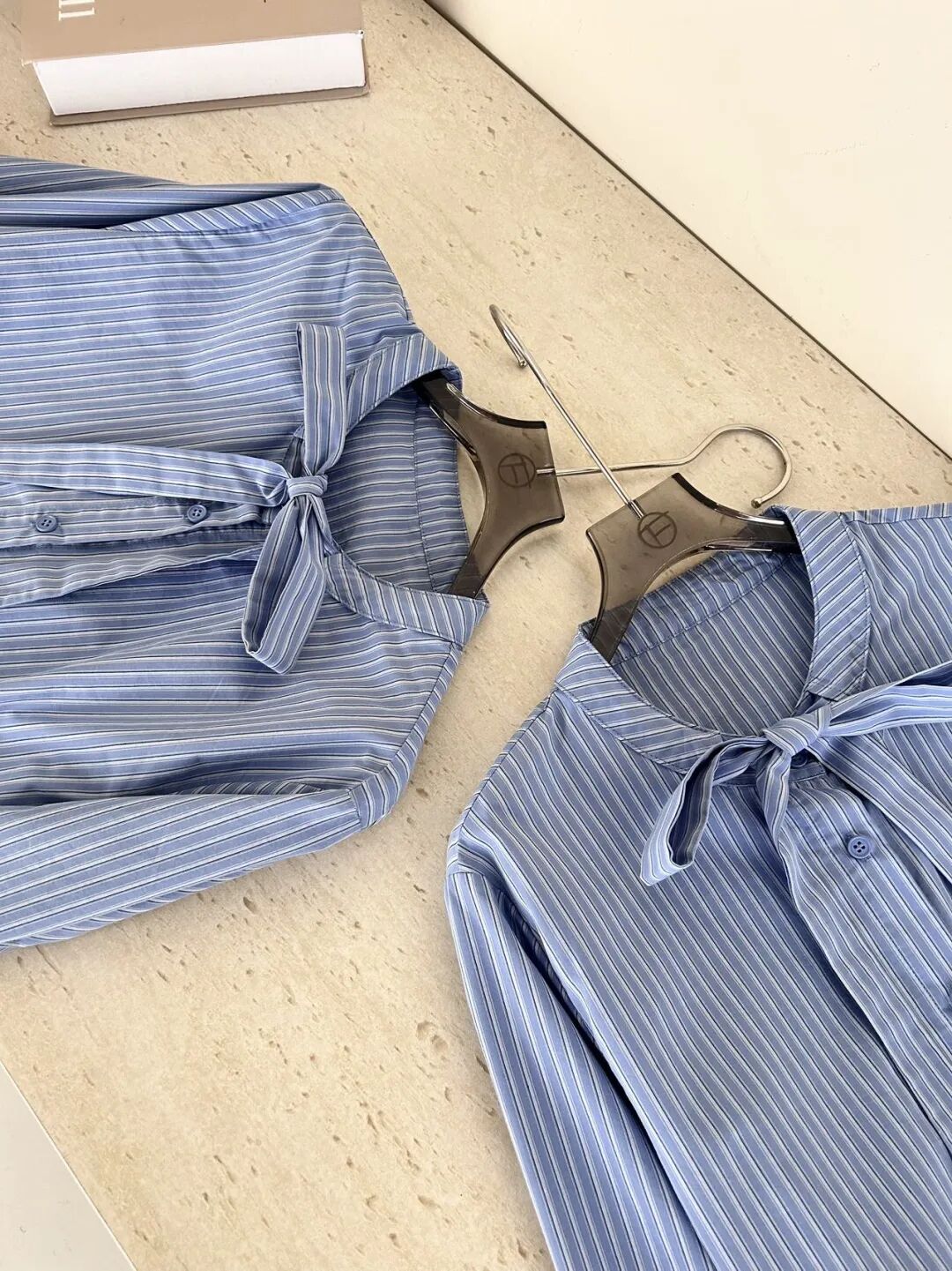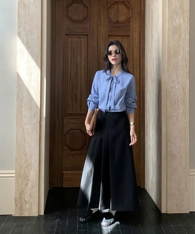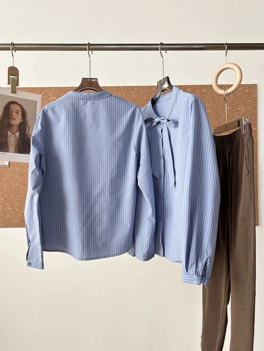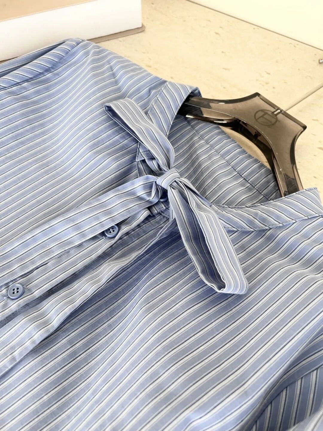 蓝色条纹蝴蝶结绑带衬衫,清新又显白,自带一种静谧的文艺感【3-5天发货】