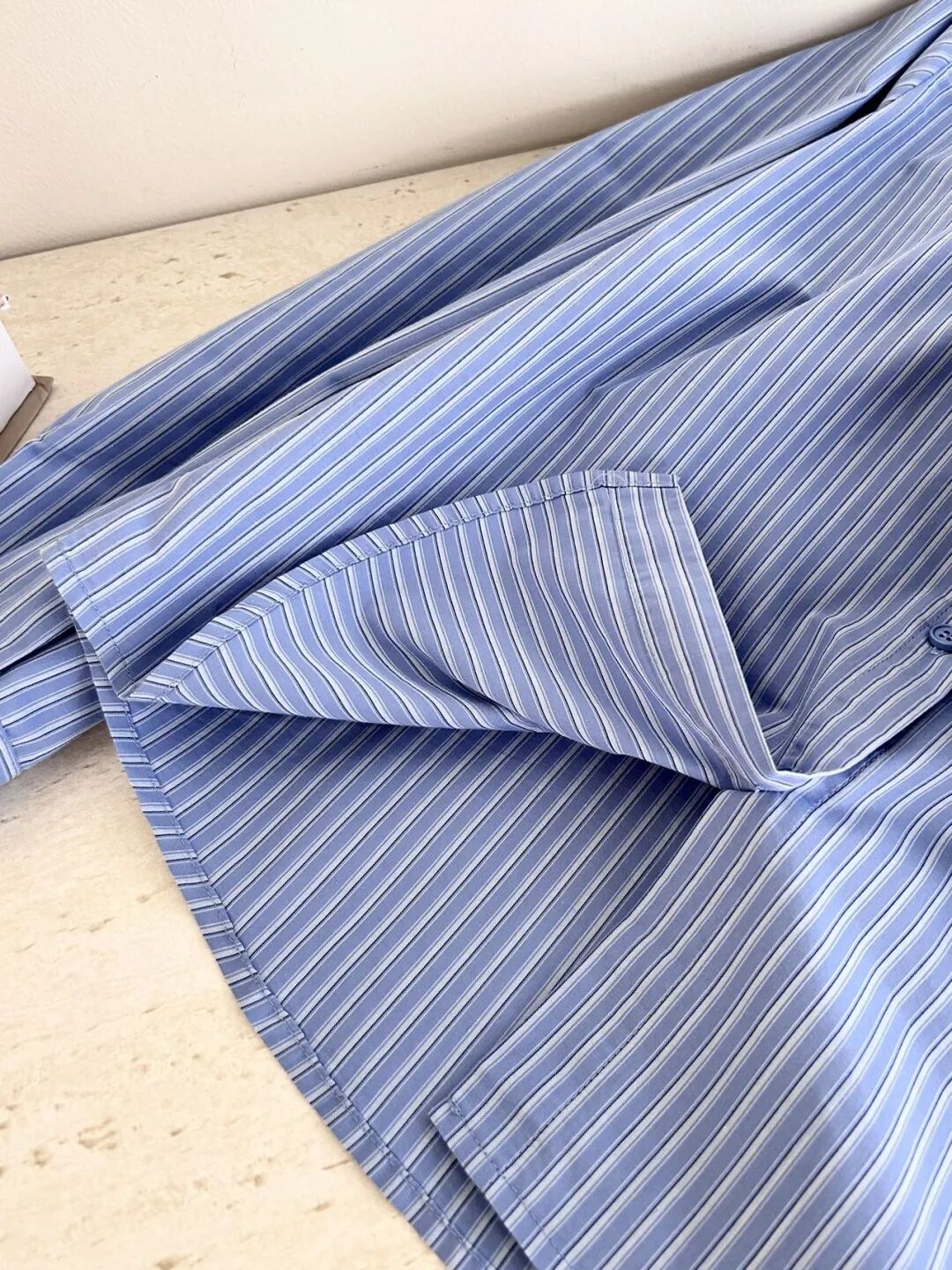 先看条纹印花,不是那种模糊发灰的廉价感