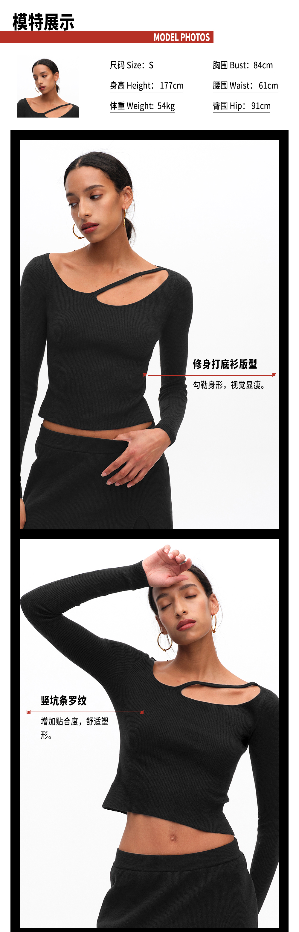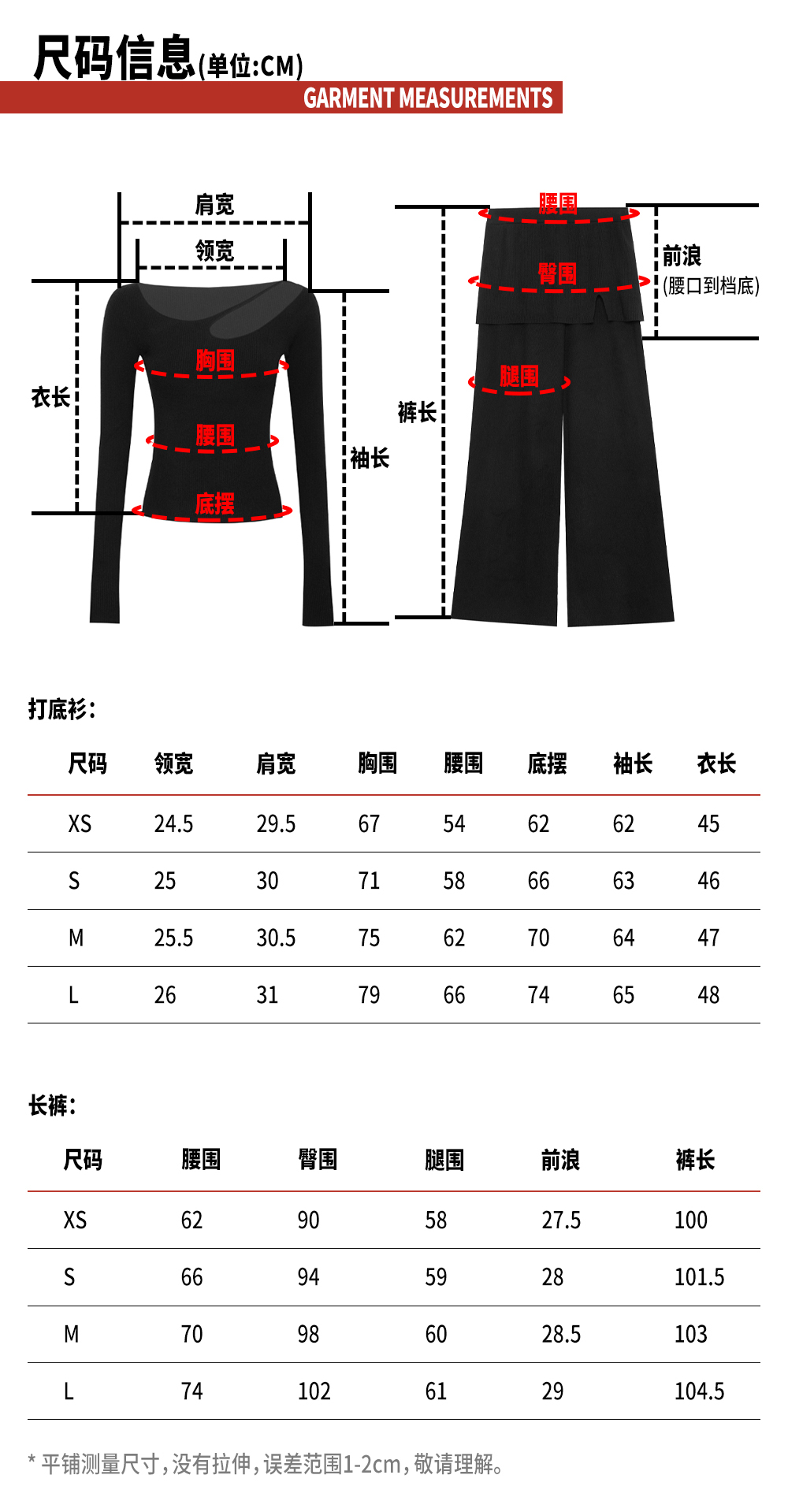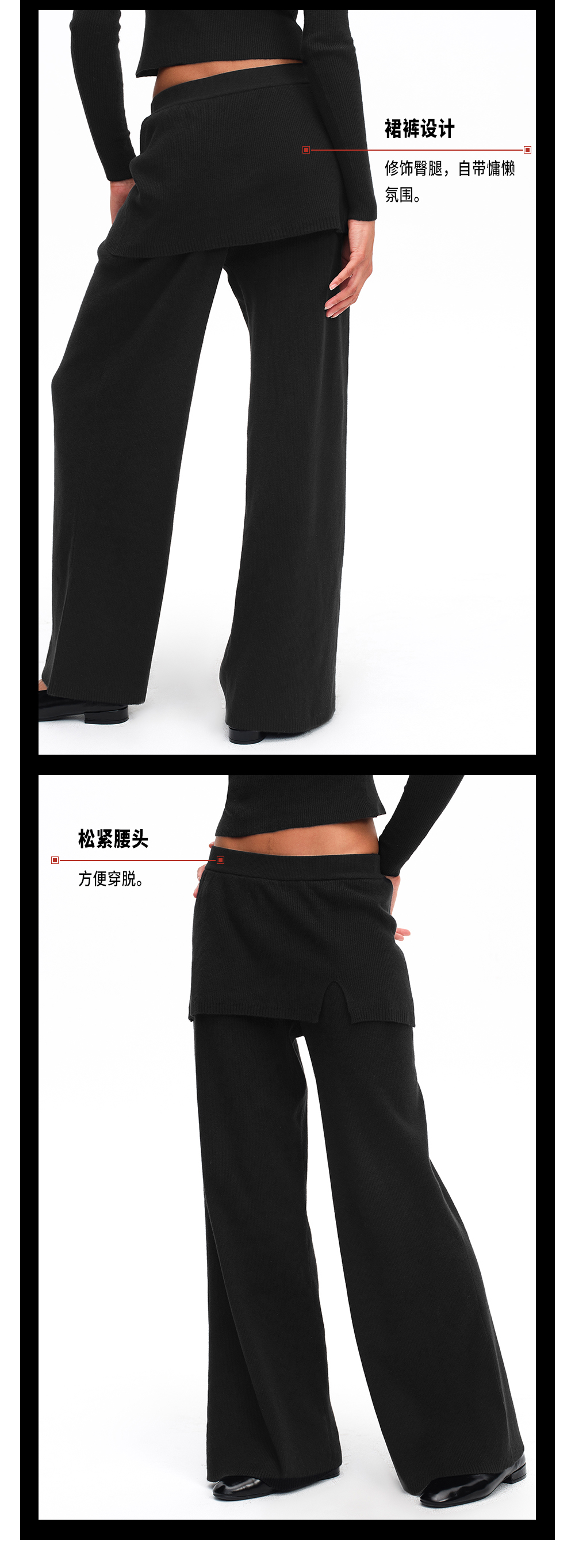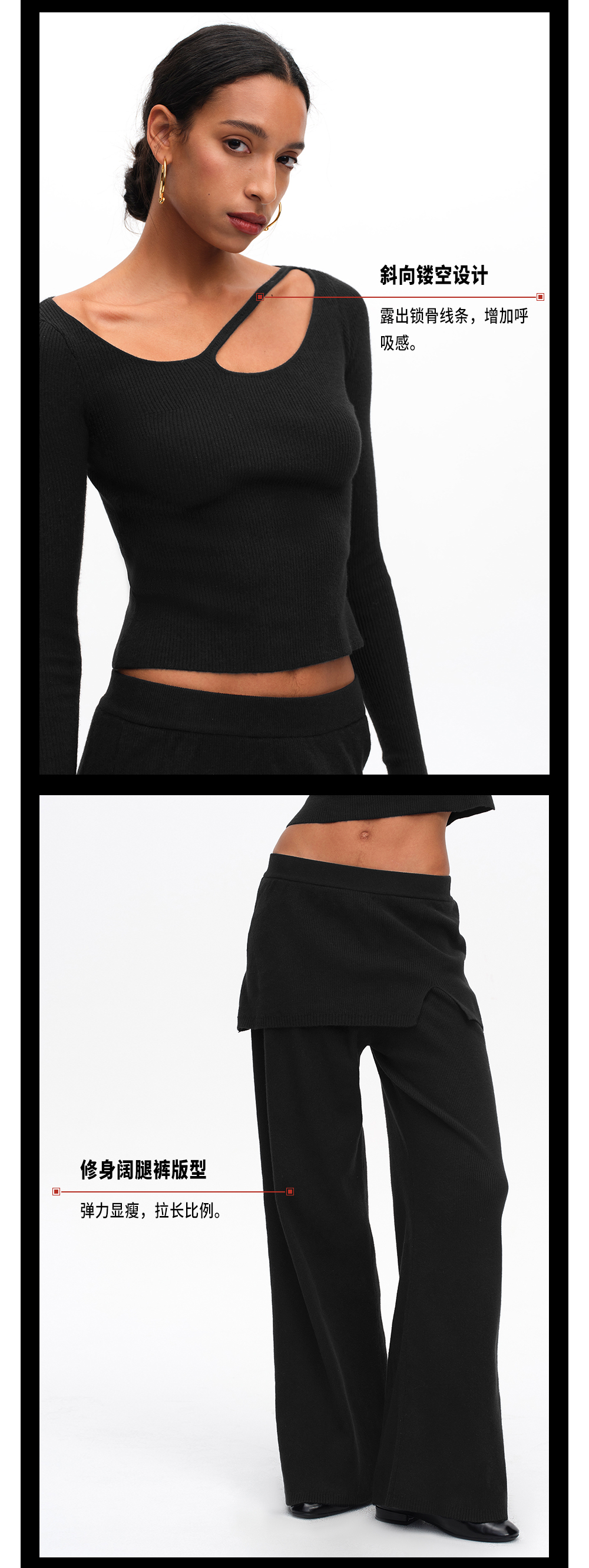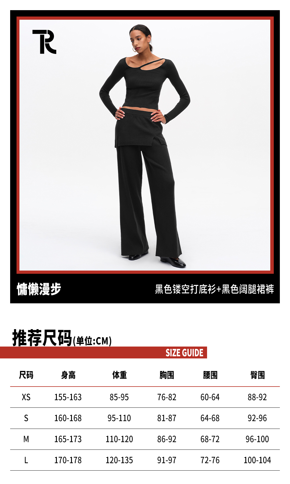 TR她热 慵懒漫步 黑色罗纹针织镂空慵懒显瘦百搭打底衫阔腿裙裤