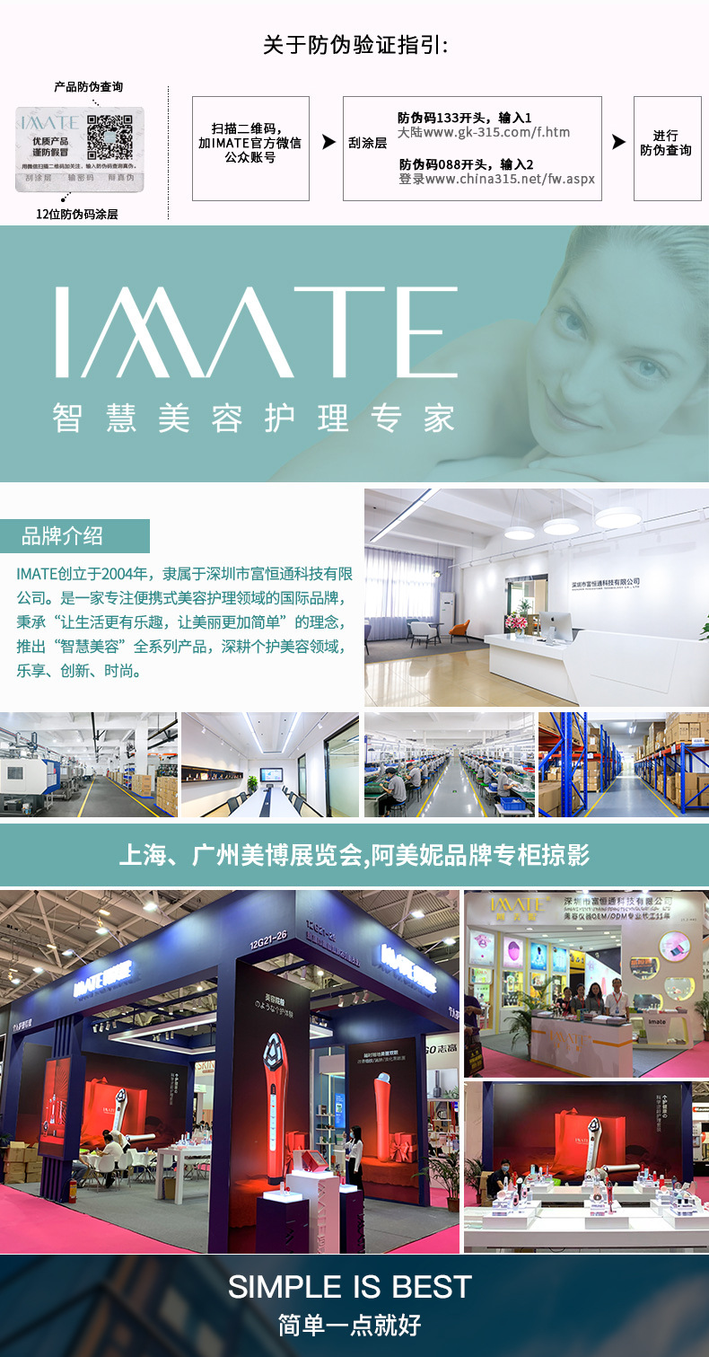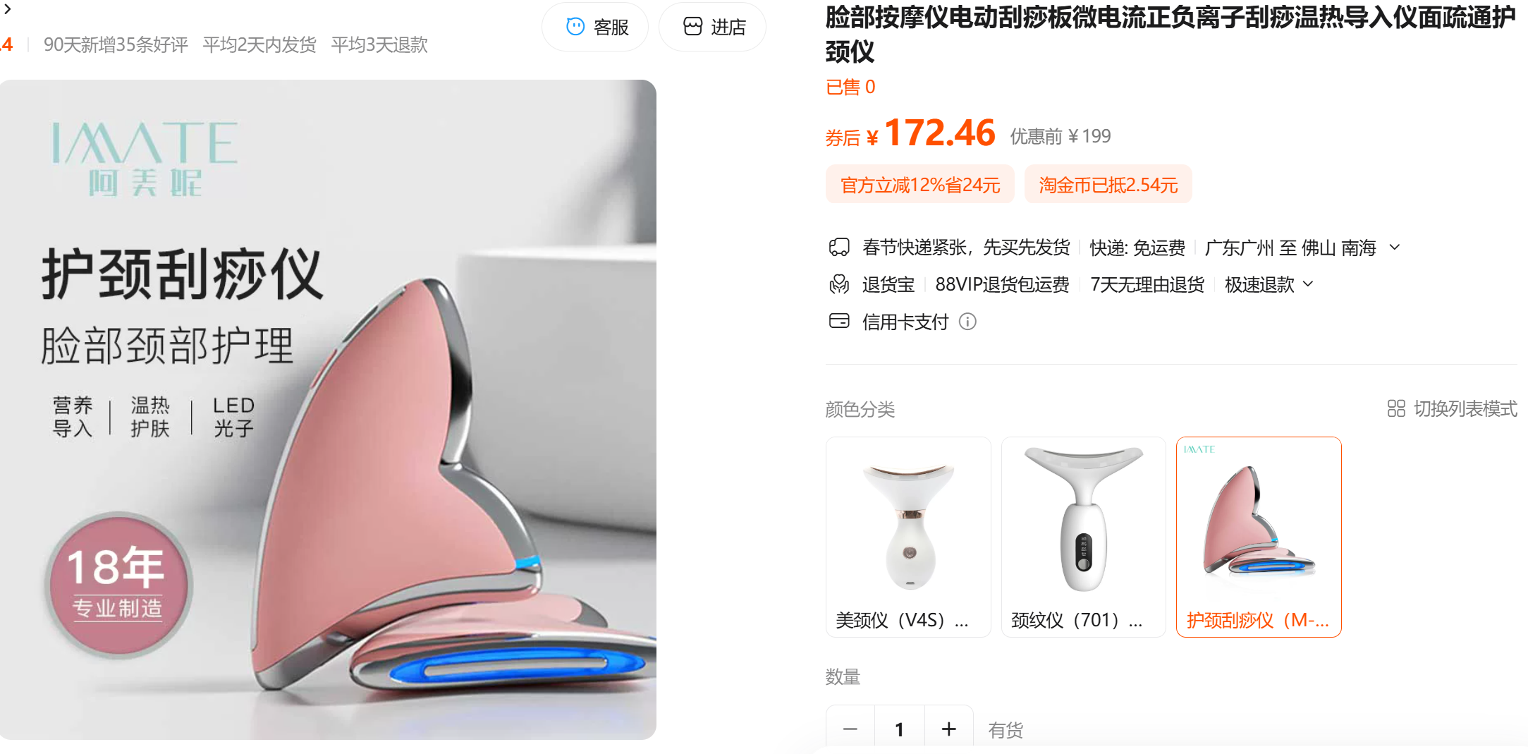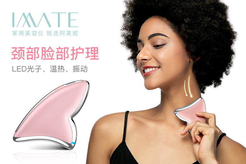 IMATE阿美妮 护颈刮痧仪 微电流正负离子脸部按摩仪 粉色 M-1202