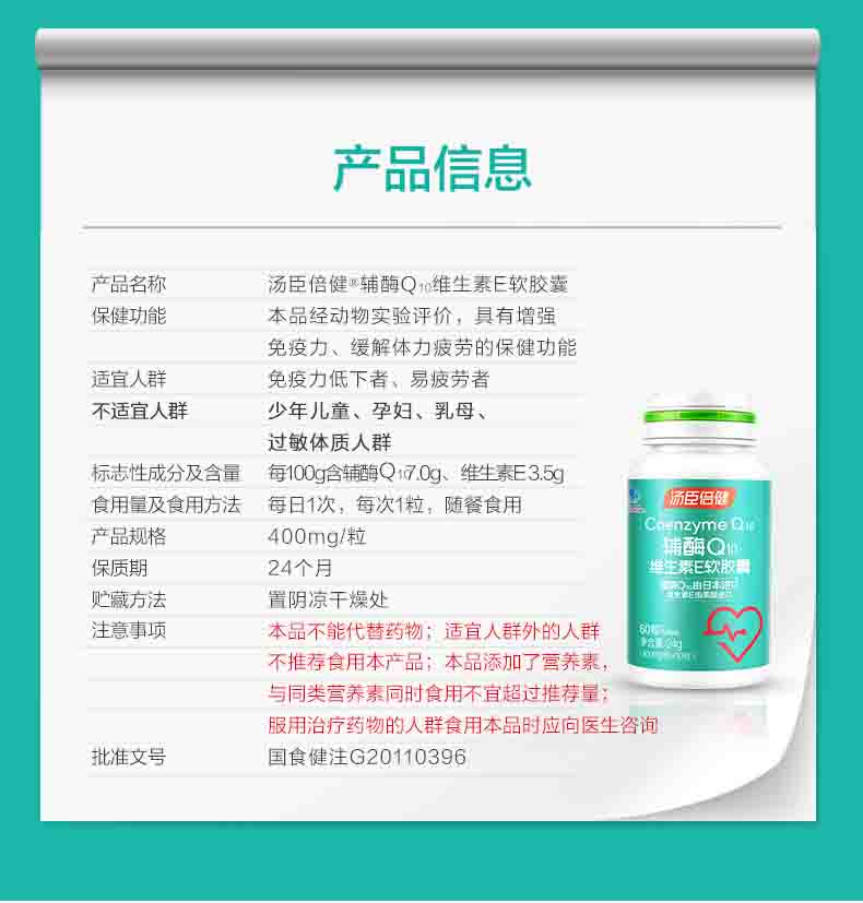 汤臣倍健辅酶Q10维生素软胶囊60粒