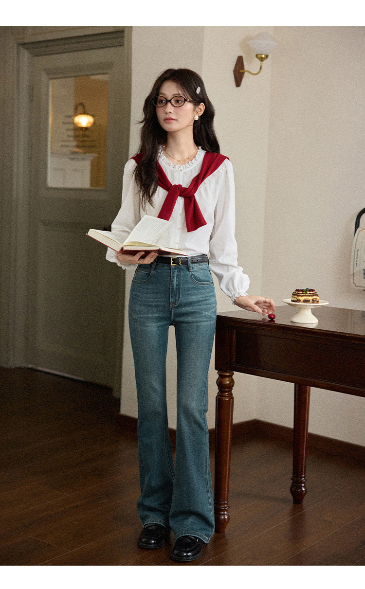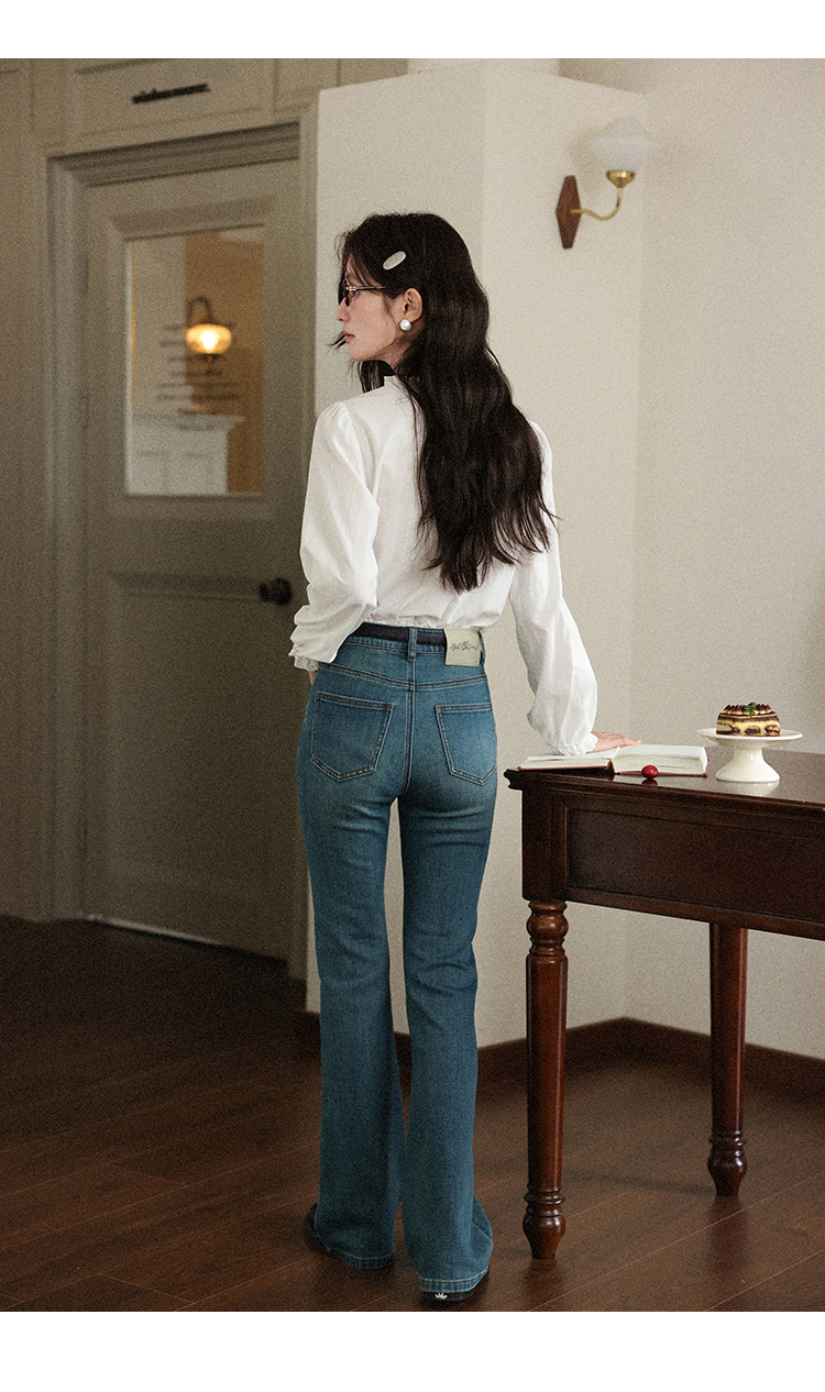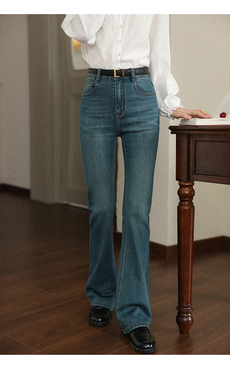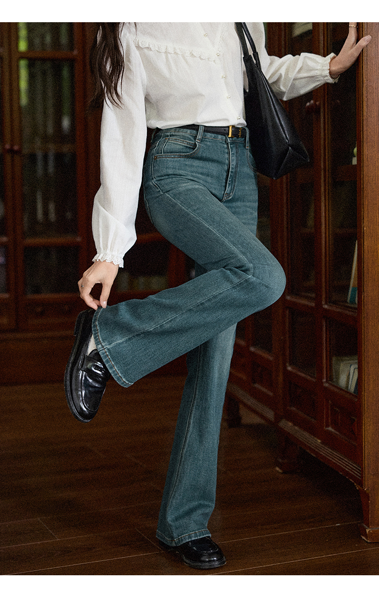 【65折秒杀】鹿向南「长腿神器」法式复古蓝显瘦牛仔裤女早秋新款休闲直筒长裤L56983