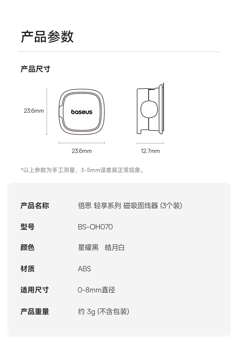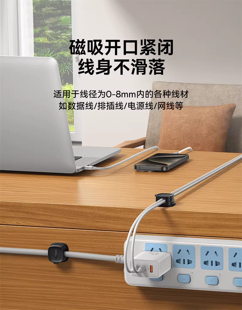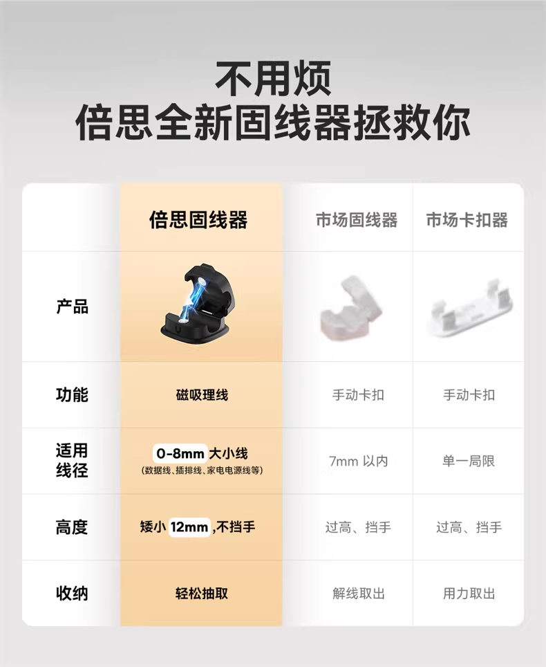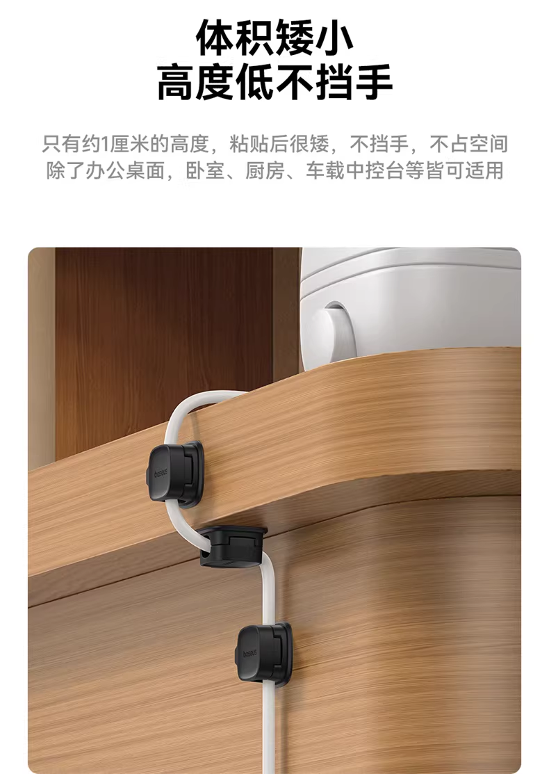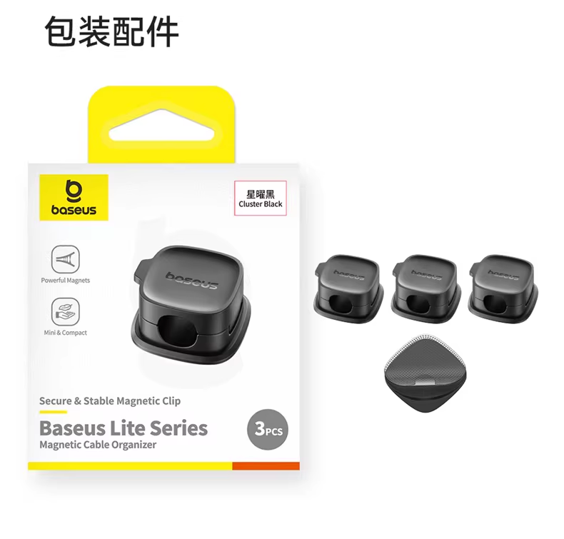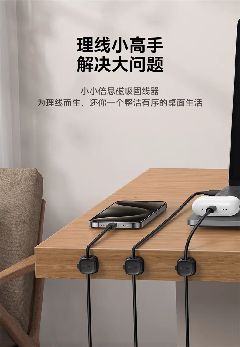 倍思 轻享系列磁吸固线器(3个装)桌面数据线磁吸固线器收纳整理